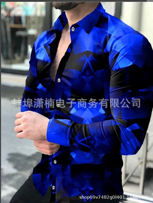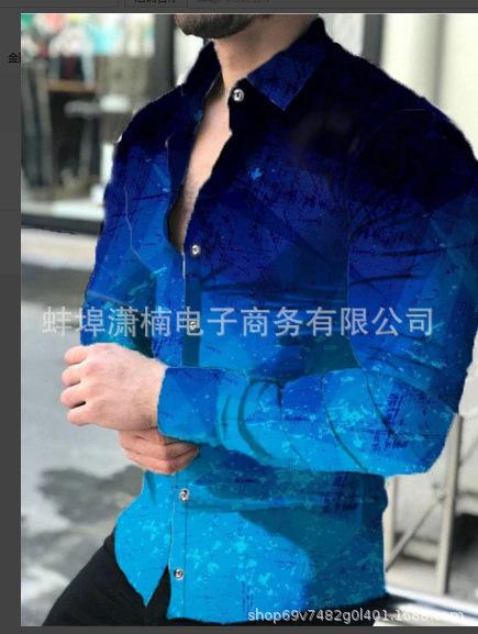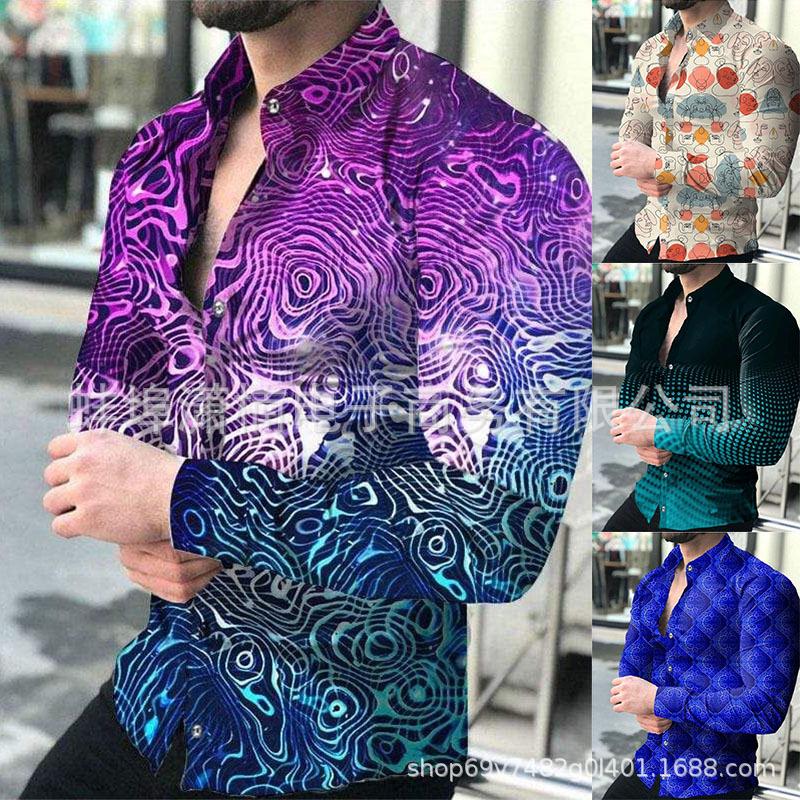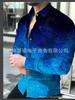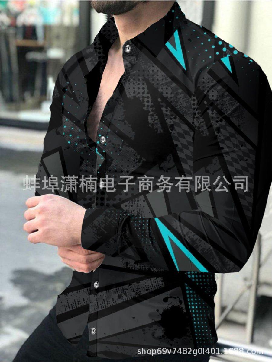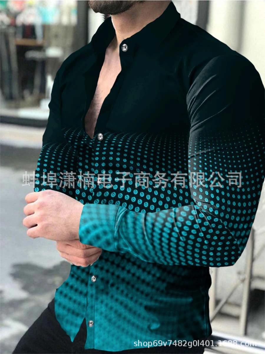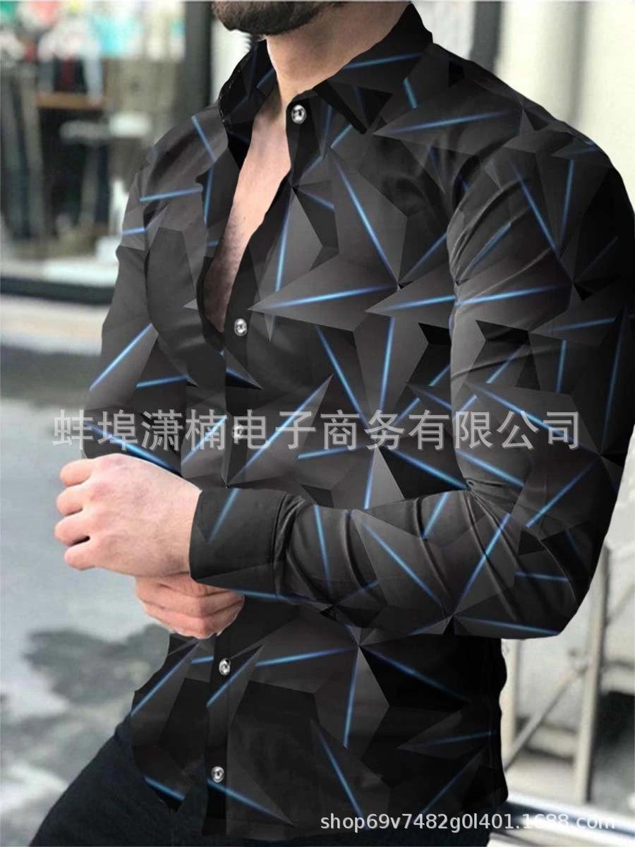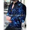 Comércio exterior transfronteiriço 2023 Nova lapela manga comprida 3D impressão casual camisa slim masculina europeia e americana roupas masculinas de grande porte