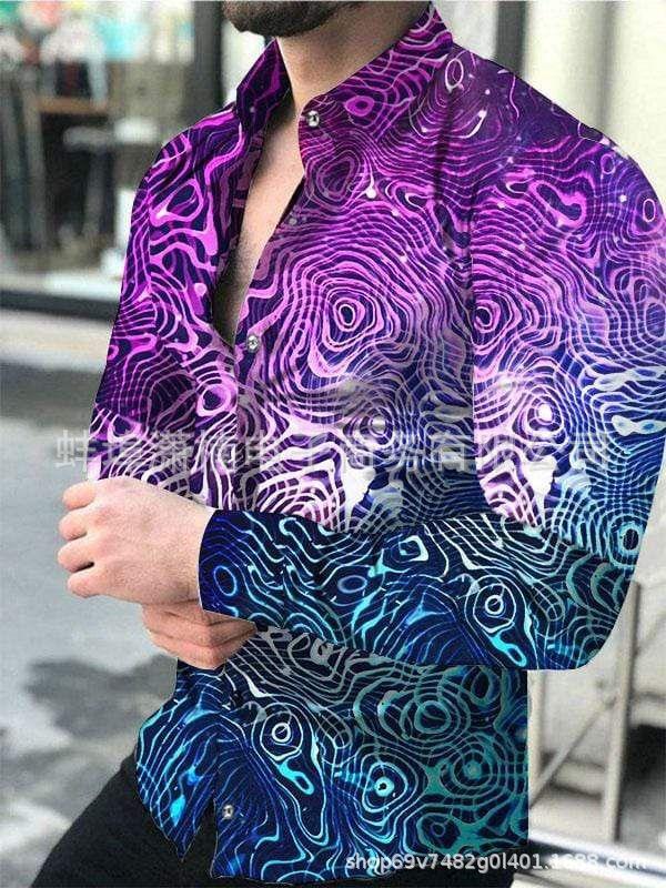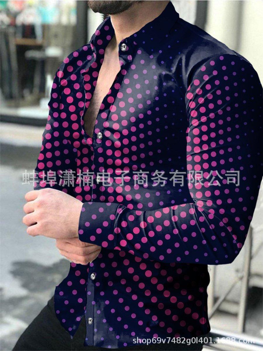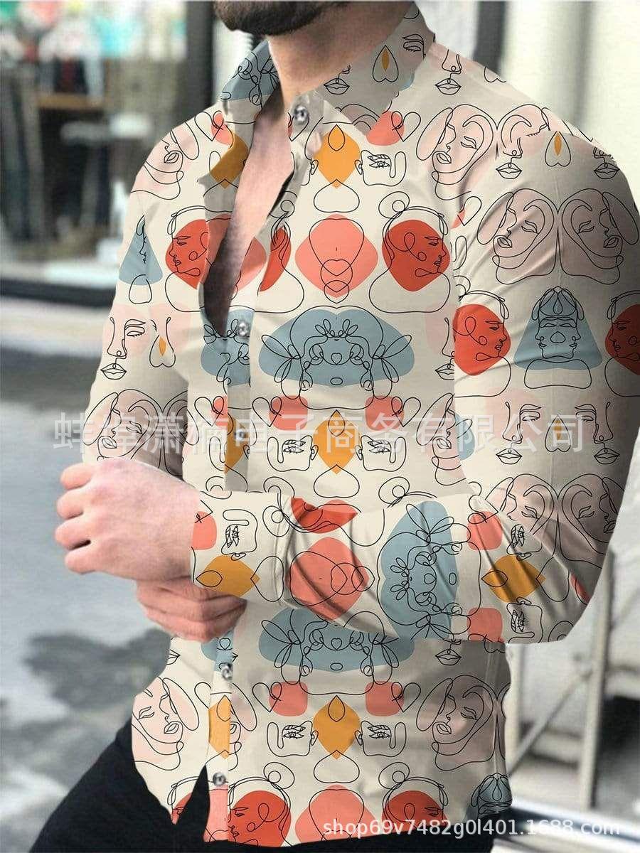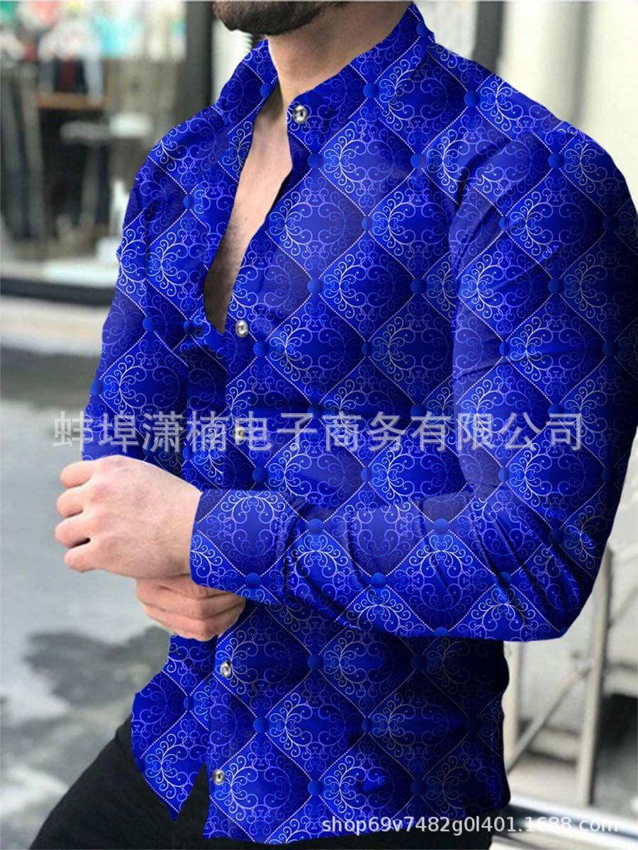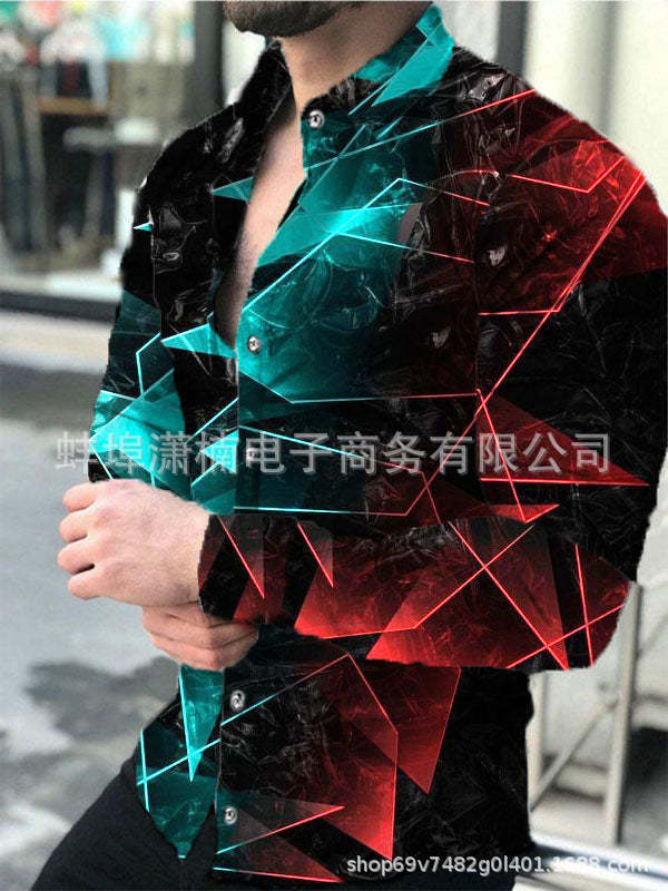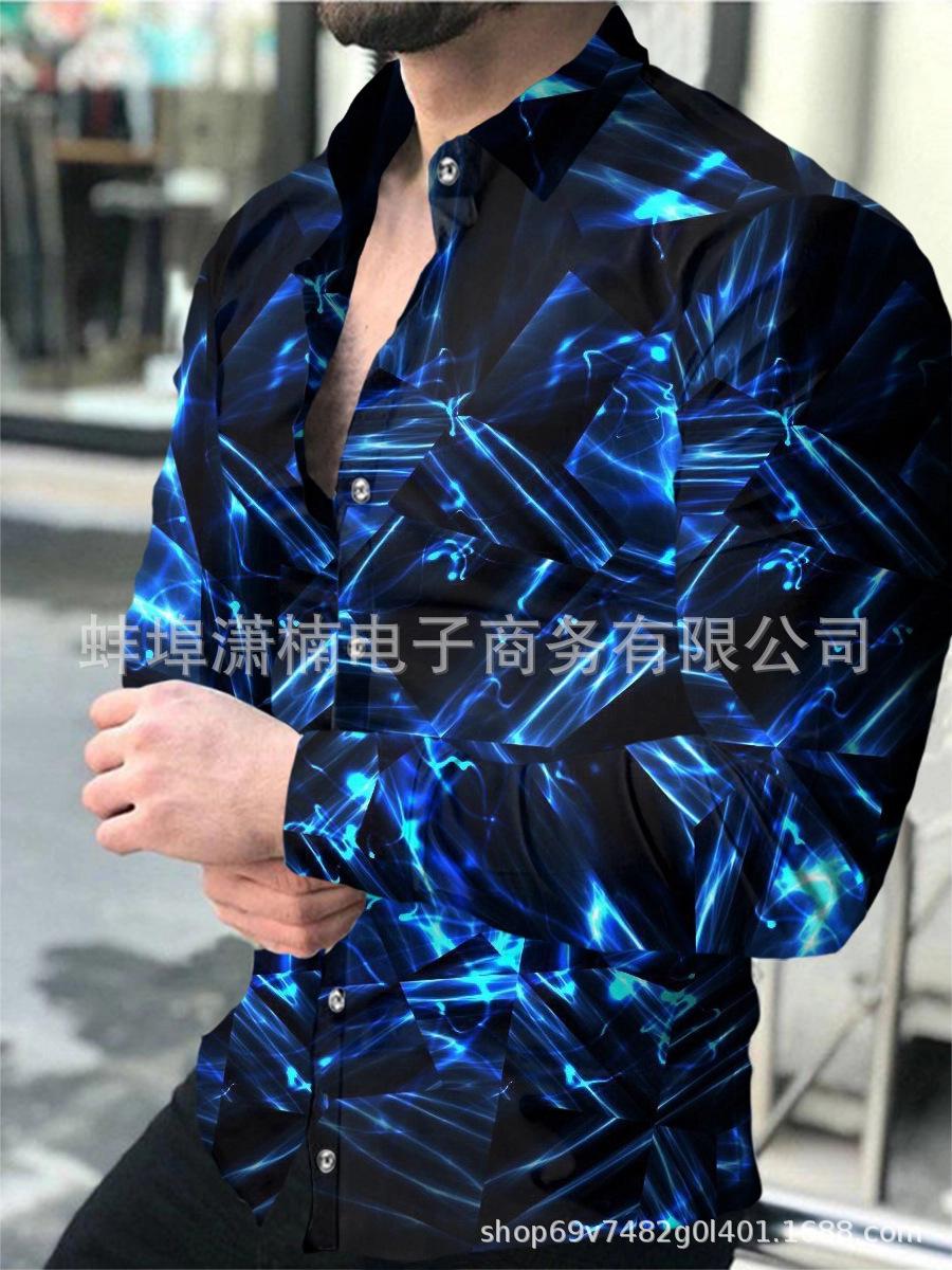 Comércio exterior transfronteiriço 2023 Nova lapela manga comprida 3D impressão casual camisa slim masculina europeia e americana roupas masculinas de grande porte