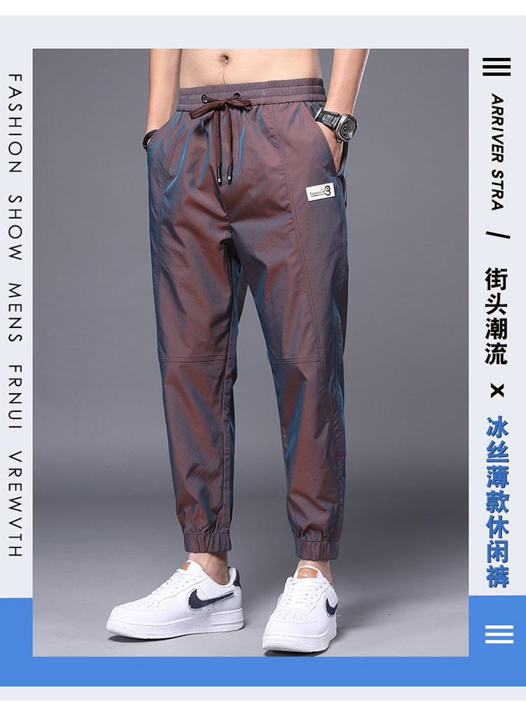 Compre Calças casuais, calças masculinas de harém fino de seda gelada, calças cropped soltas e amarradas no tornozelo, calças masculinas de primavera e outono no atacado no Joom.pro