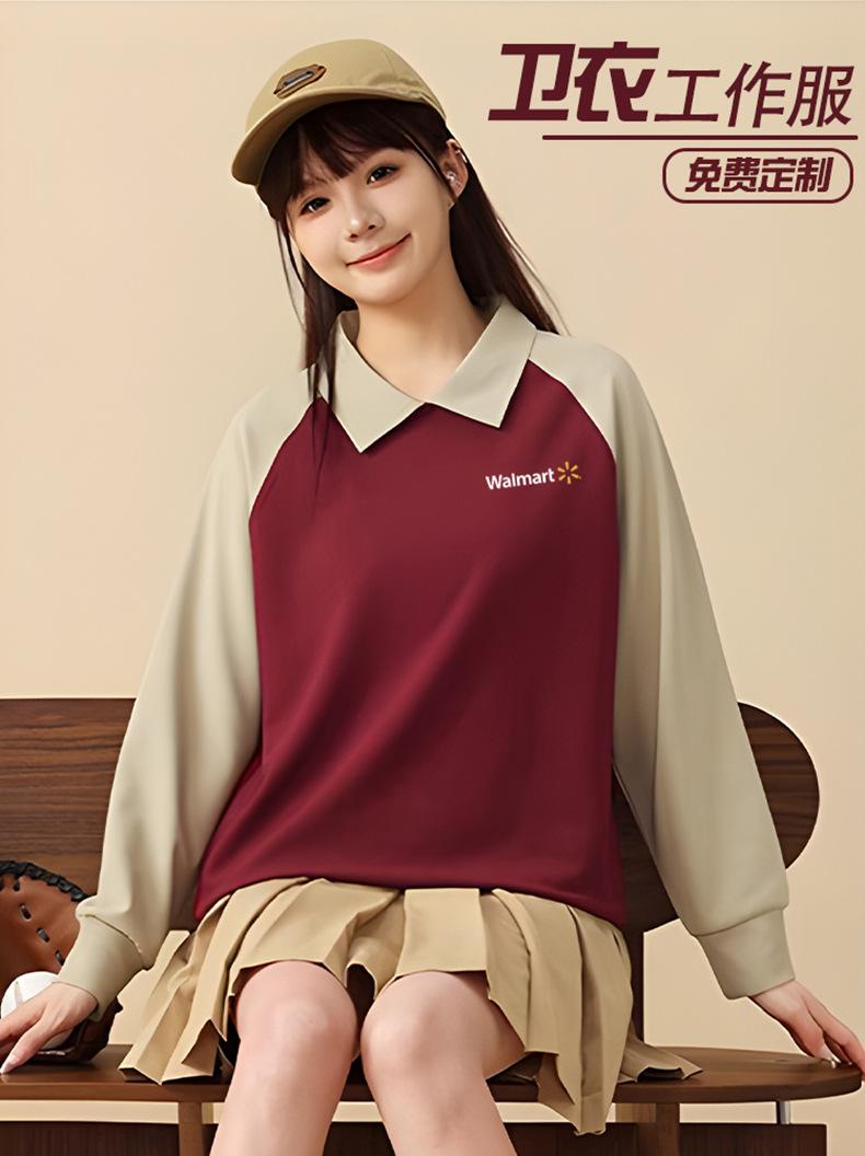 Light luxury grade--burgundy (pineapple plaid color-blocked raglan sleeves and lapel sweatshirt)