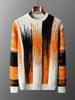 Suéter de Cor Contrastante Masculino com Decote Redondo Outono e Inverno 100 Suéter de Malha de Lã Pura Suéter Jacquard Solto Casual Camisa de Base Engrossada