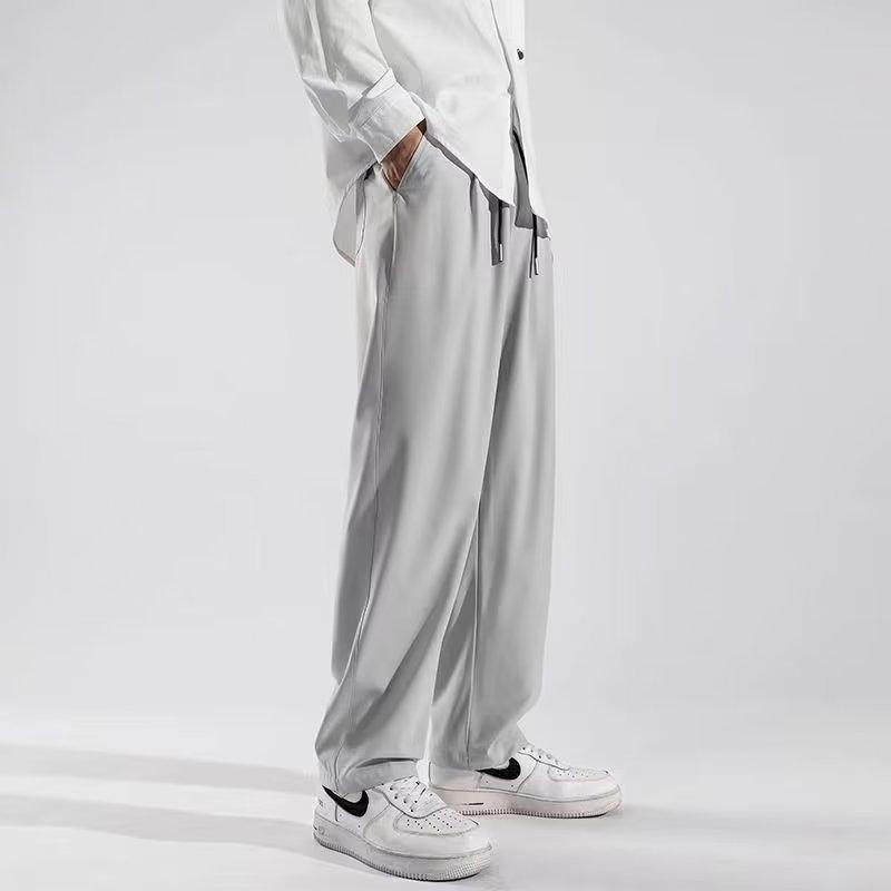 Compre Calças de seda de gelo Calças Masculinas de Verão Finas Calças Retas Largas de Secagem Rápida Masculinas Calças Casuais de Perna Larga no atacado no Joom.pro