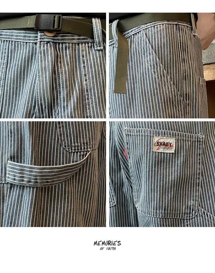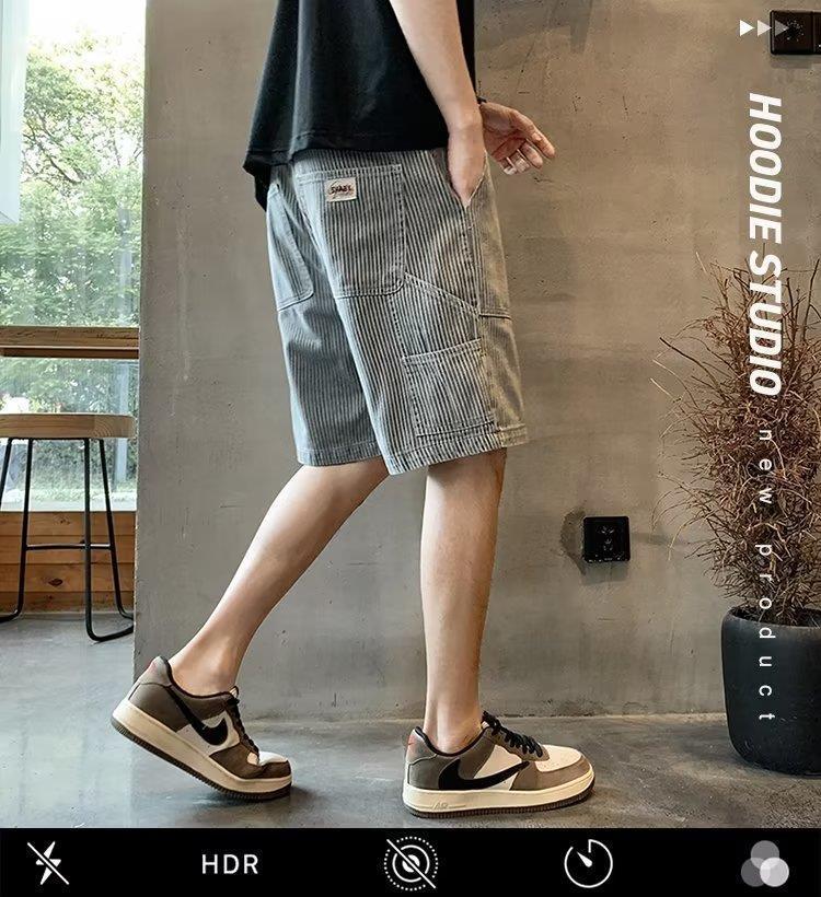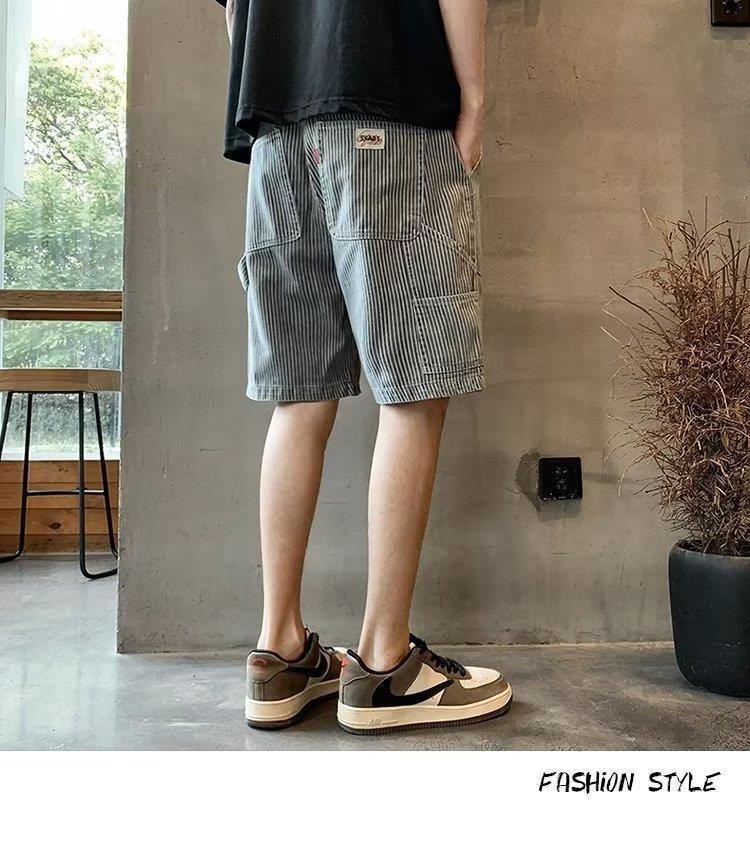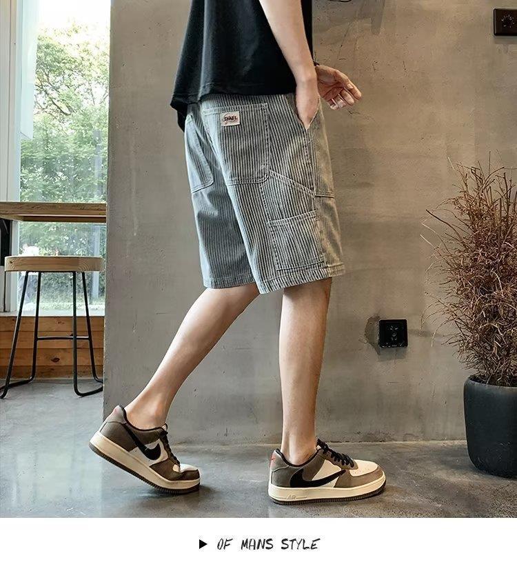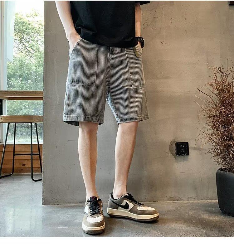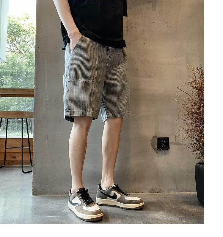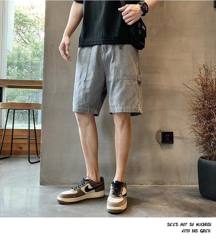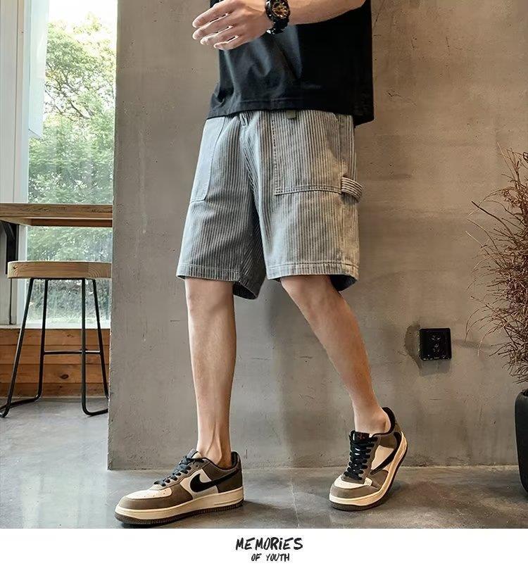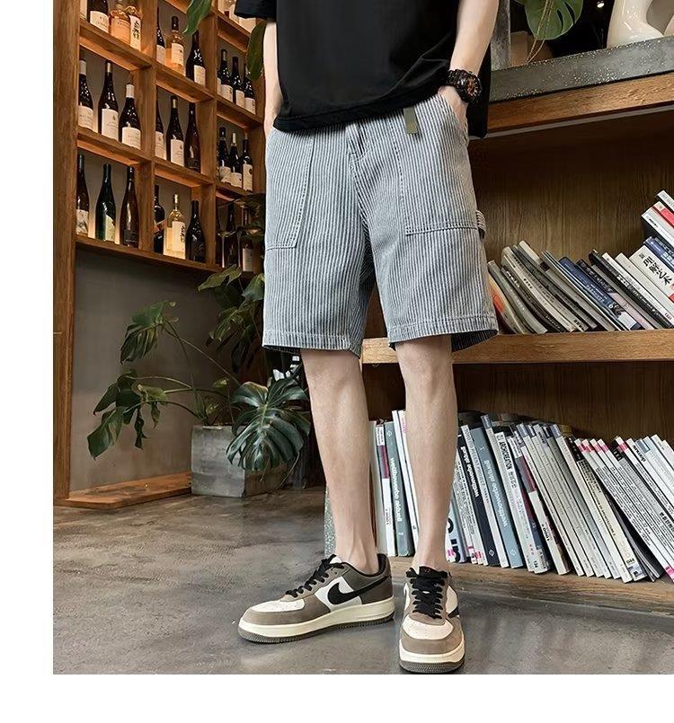 Compre Shorts listrados bonitos soltos de verão Calças jeans masculinas Design Sense estilo japonês Calças casuais retrô no atacado no Joom.pro