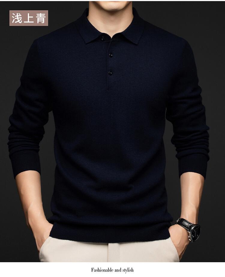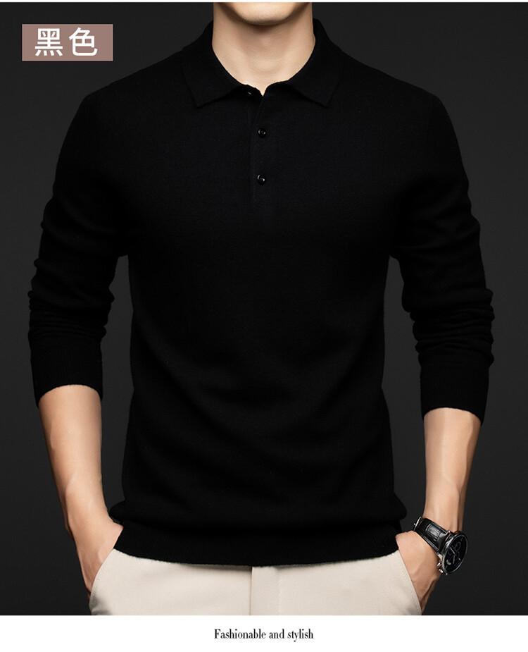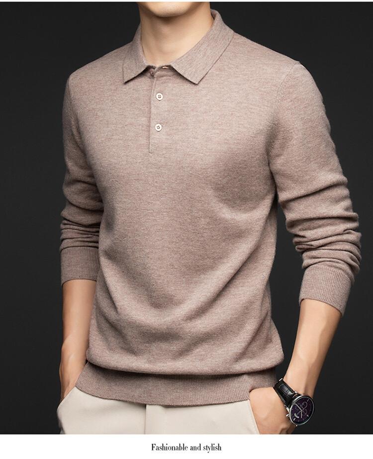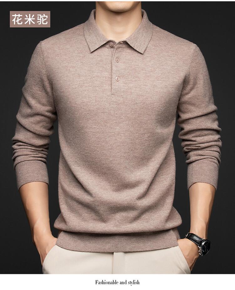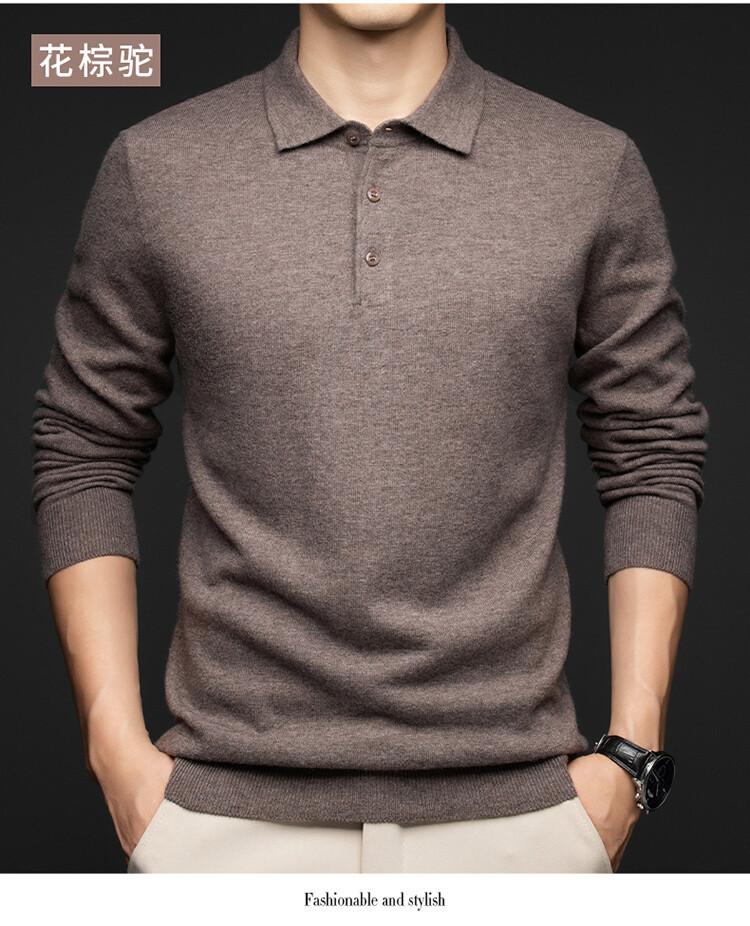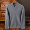 2024 Outono e Inverno 100 Lã Manga Comprida Lapela Suéter Masculino Moda Quente Solto Casual Base Suéter de Lã