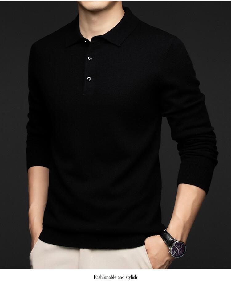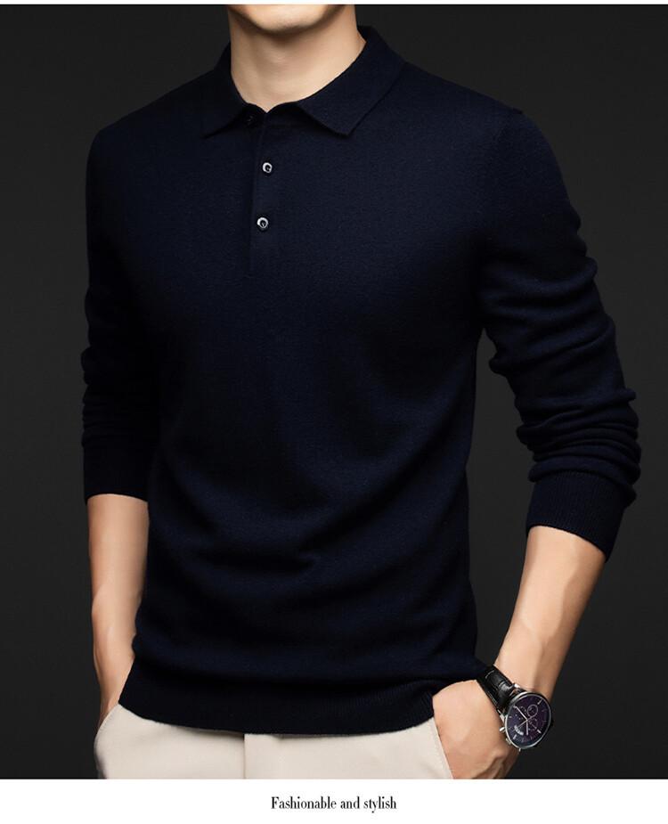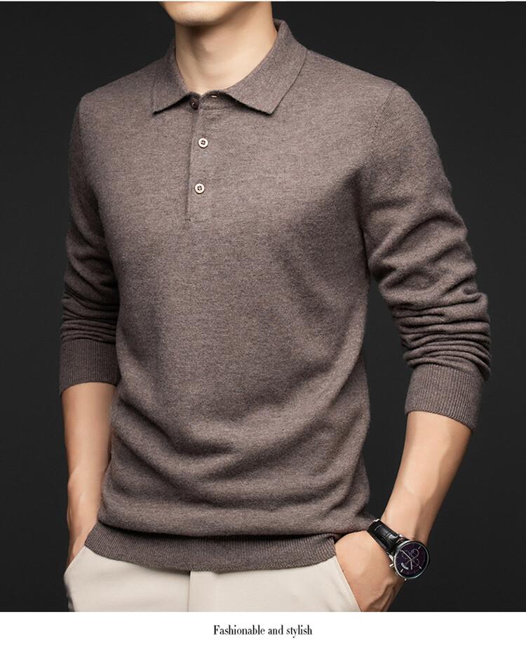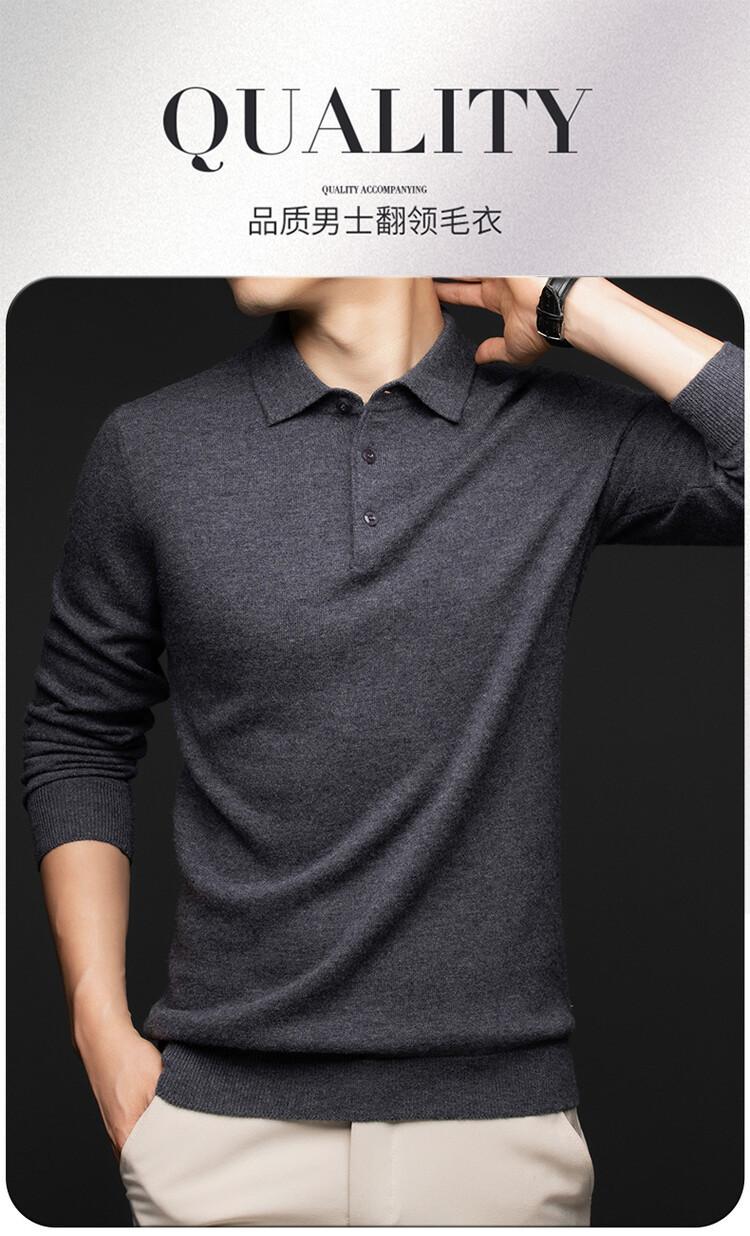 2024 Outono e Inverno 100 Lã Manga Comprida Lapela Suéter Masculino Moda Quente Solto Casual Base Suéter de Lã
