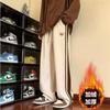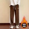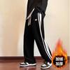 Calças de veludo cotelê listradas para homens de outono e inverno forradas de lã Calças esportivas espessas para homens Calças casuais retas soltas masculinas
