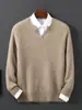 Outono e inverno novo masculino com decote em V cardigã de malha cor sólida pulôver solto suéter negócios casual camisa de base de manga comprida