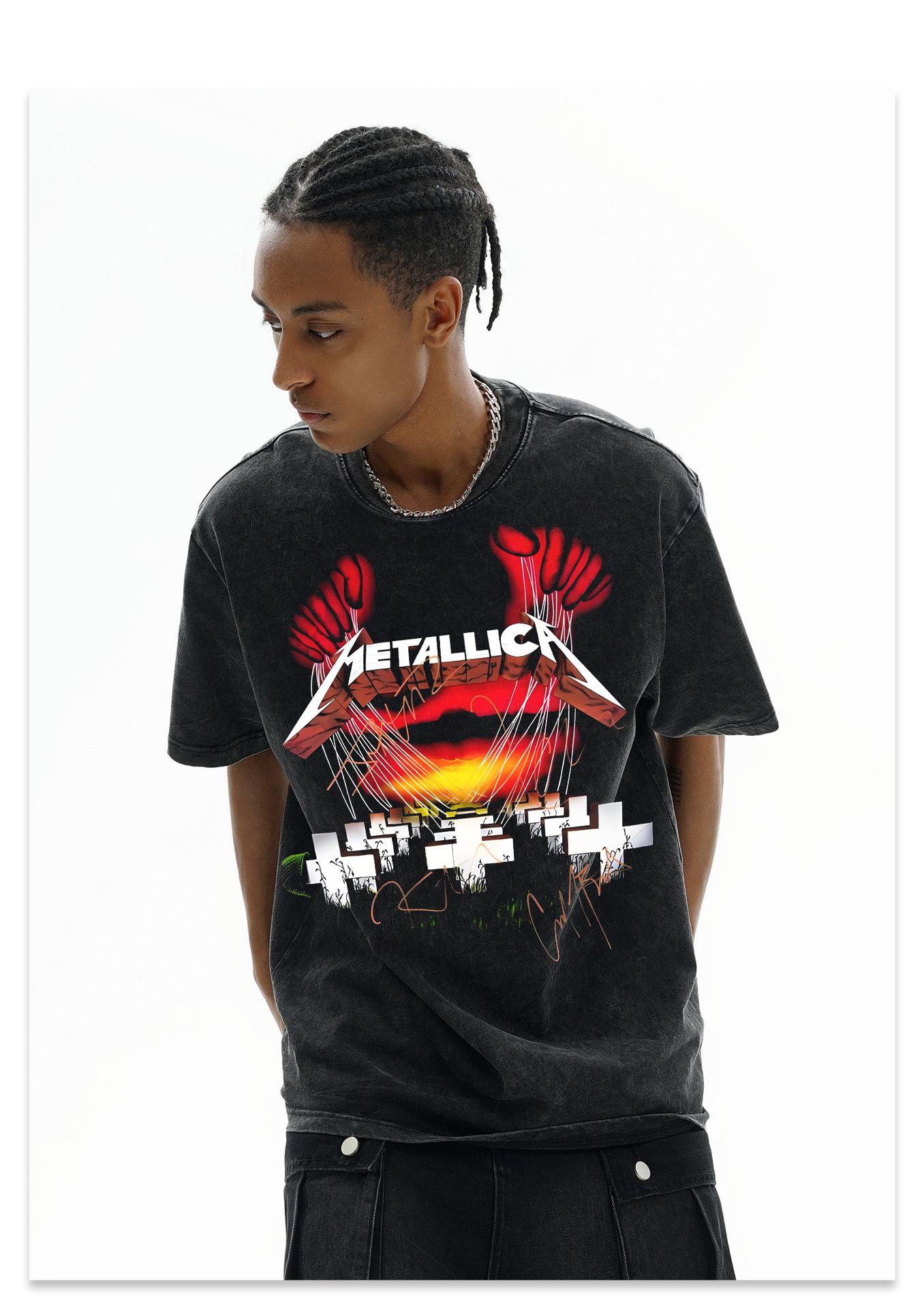 Camiseta de manga curta pesada retrô americana para homens da marca Trendy Loose Teenager T-shirt lavada na moda com queda de ombro T