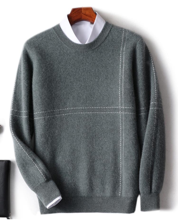 Outono e inverno novo suéter de lã solto dos homens camisola de gola redonda engrossado pulôver base casual malha suéter de caxemira