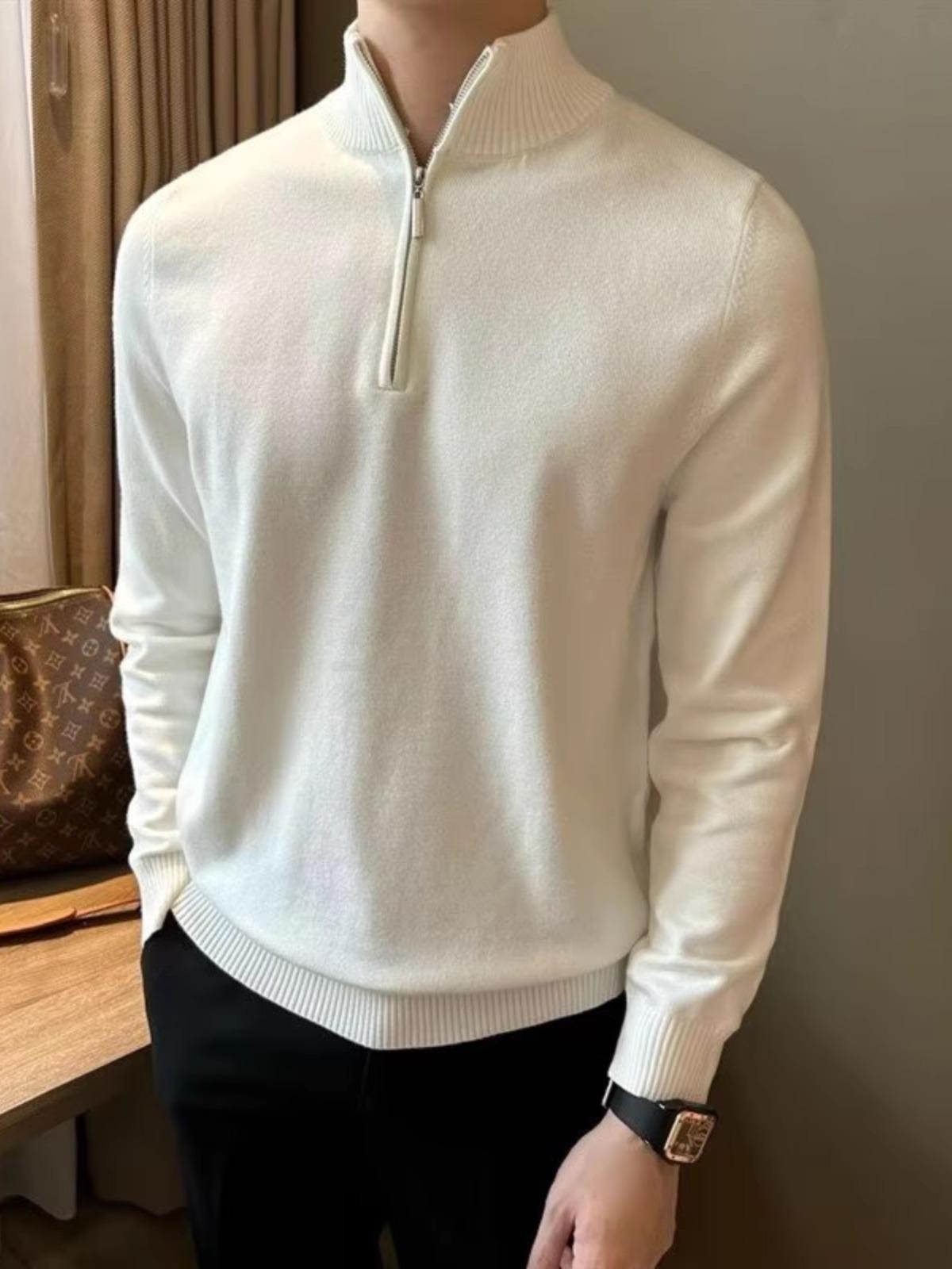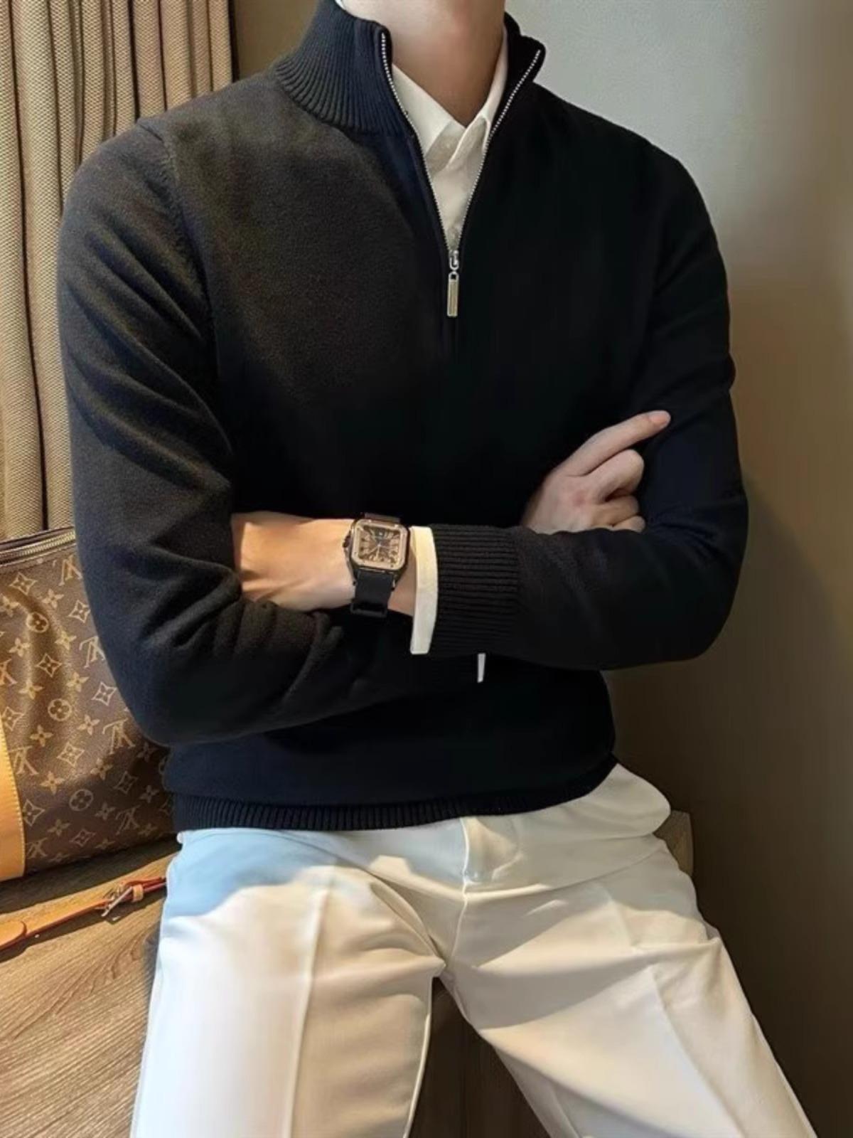 Suéter de manga comprida Meia-gola alta Suéter com base de zíper Pulôver masculino 2024 Pulôver Outono e inverno Suéter para todos os jogos Suéter masculino