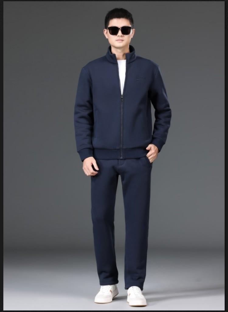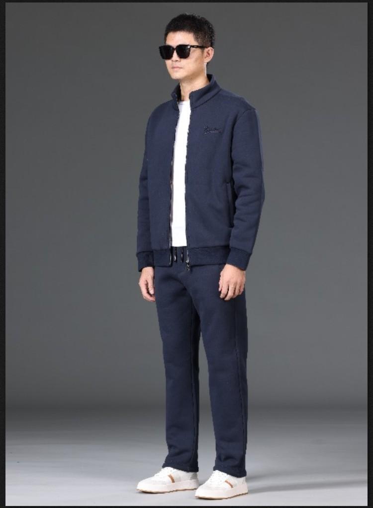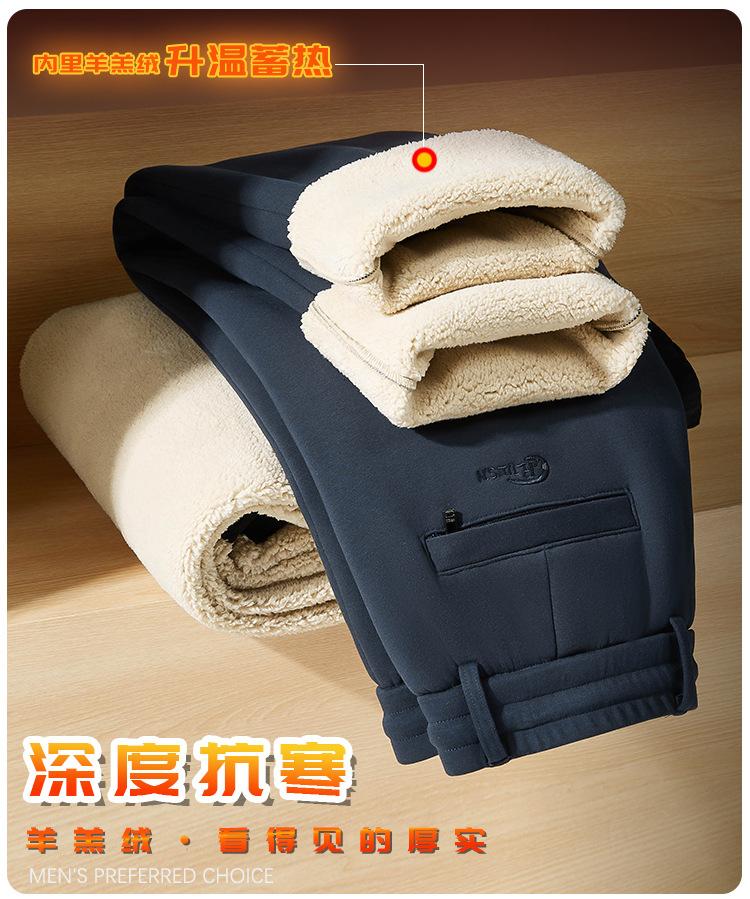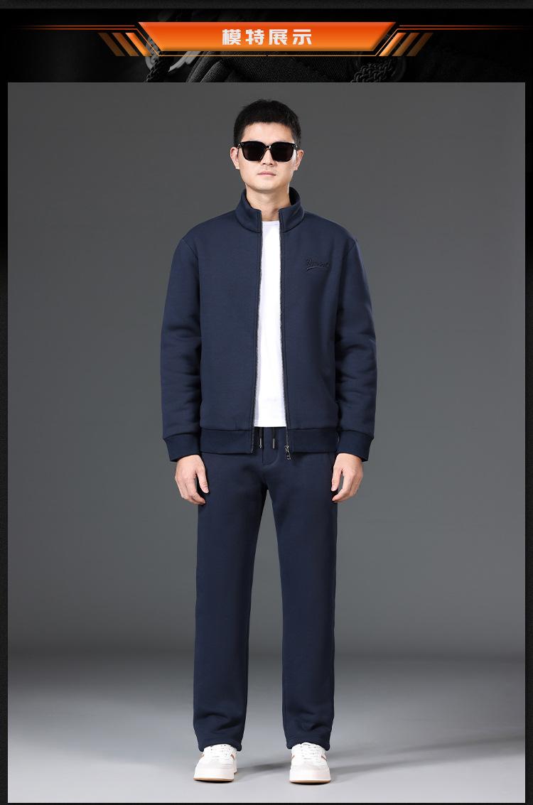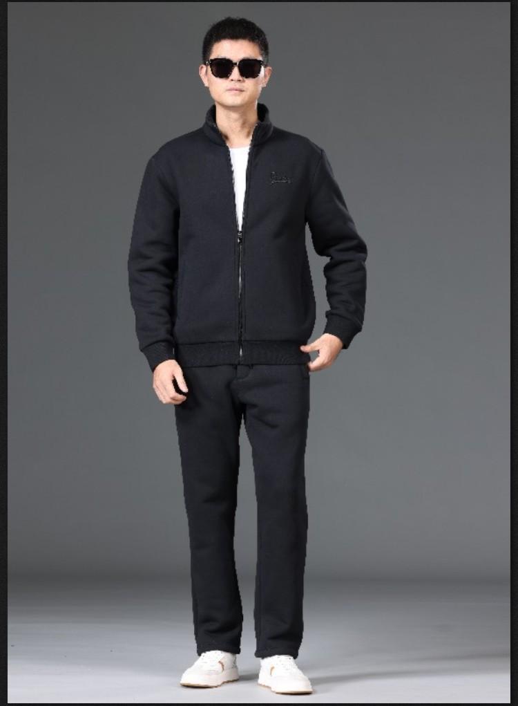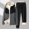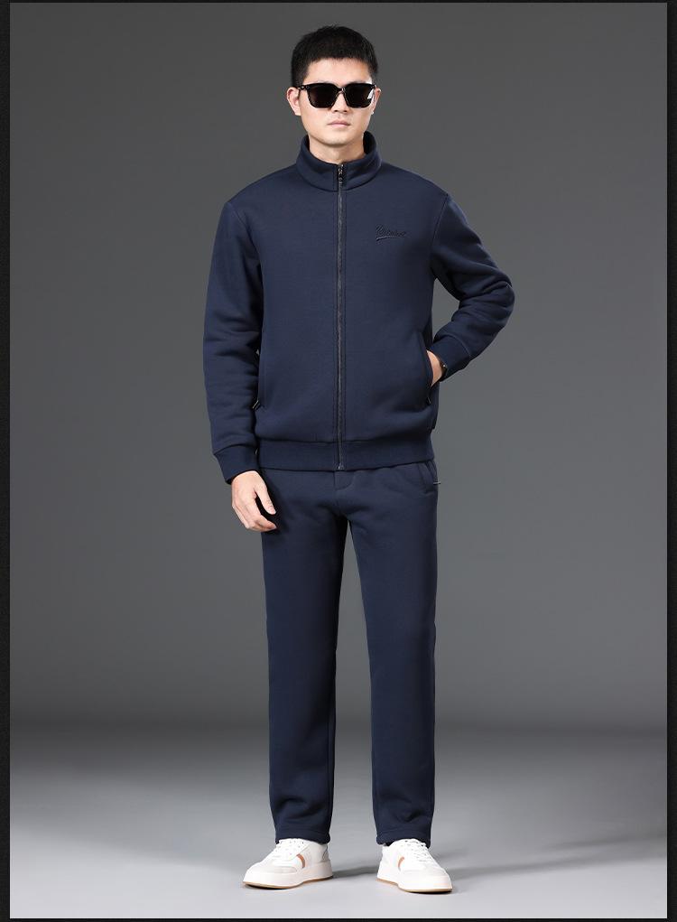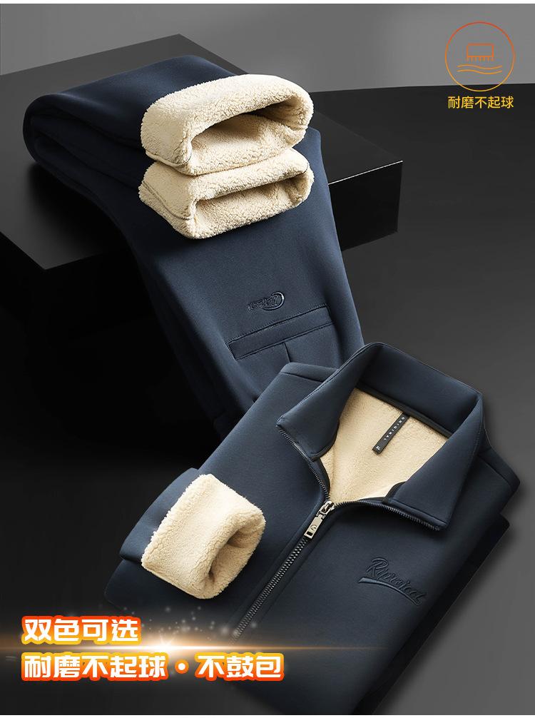 Terno casual de caxemira com forro de lã masculino, conjunto esportivo de inverno, calças de algodão quentes e espessas, conjunto de duas peças 69