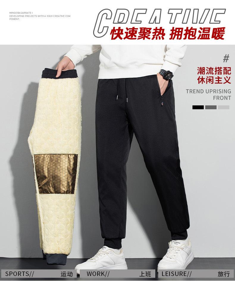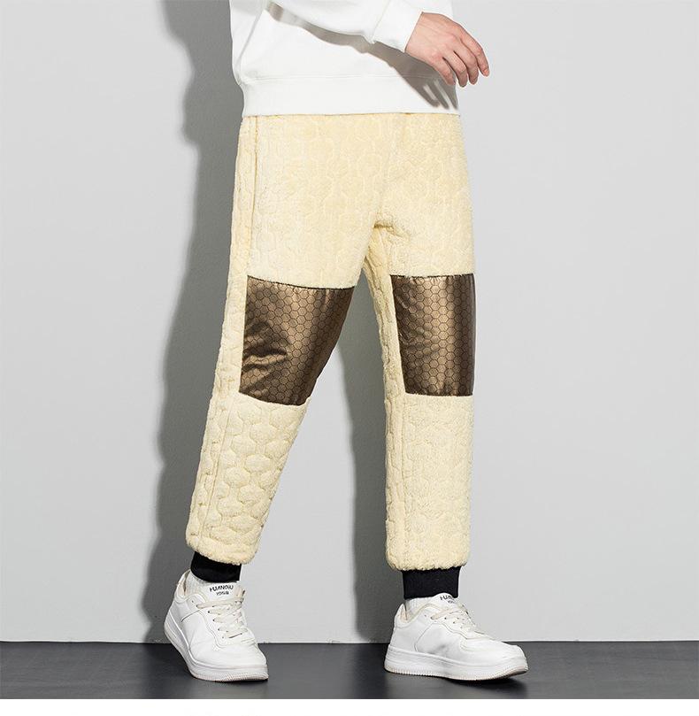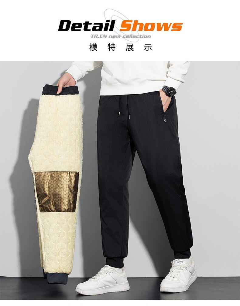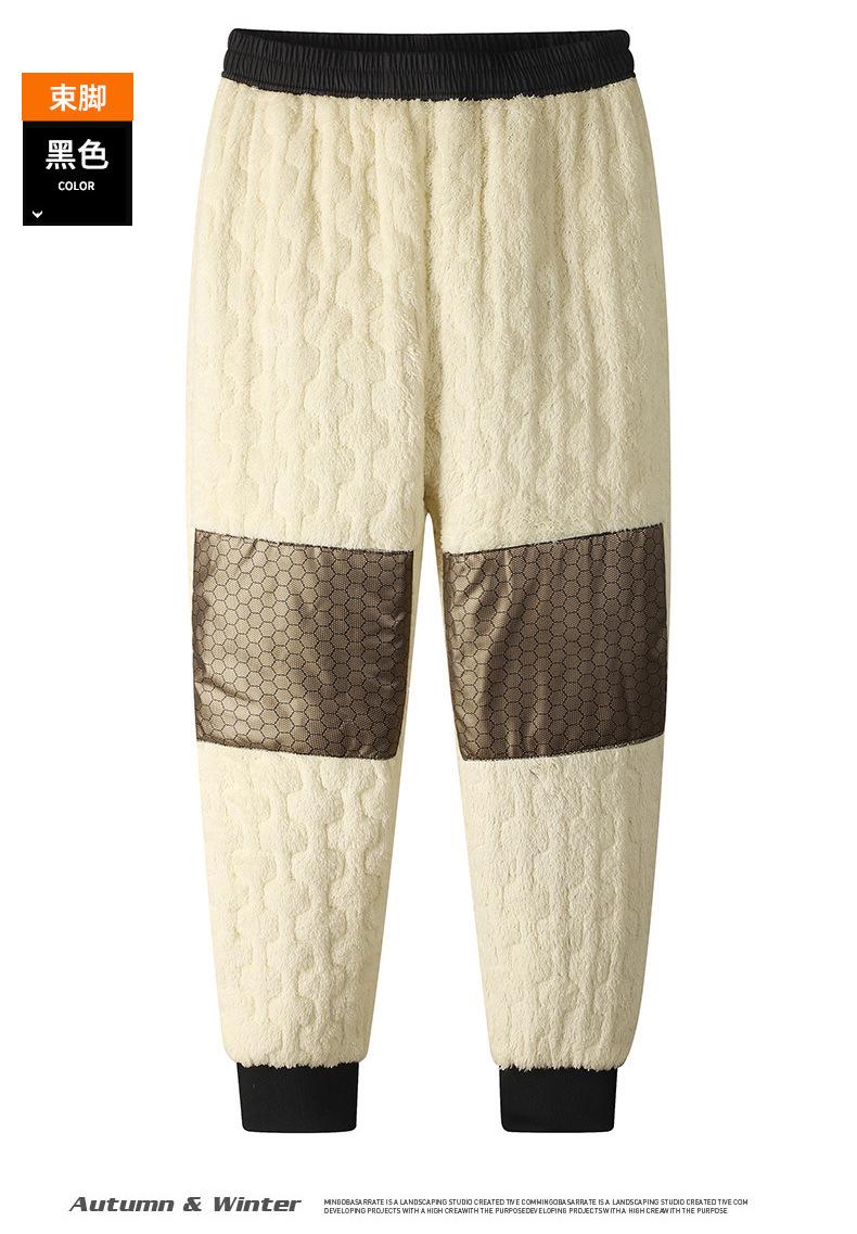 Calças de Algodão de Inverno para Homens Tamanho Extra Grande Veludo de Cordeiro Forrado com Lã Engrossado Roupas Externas de Inverno Calças Casuais Retas Soltas Quentes