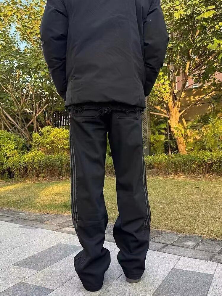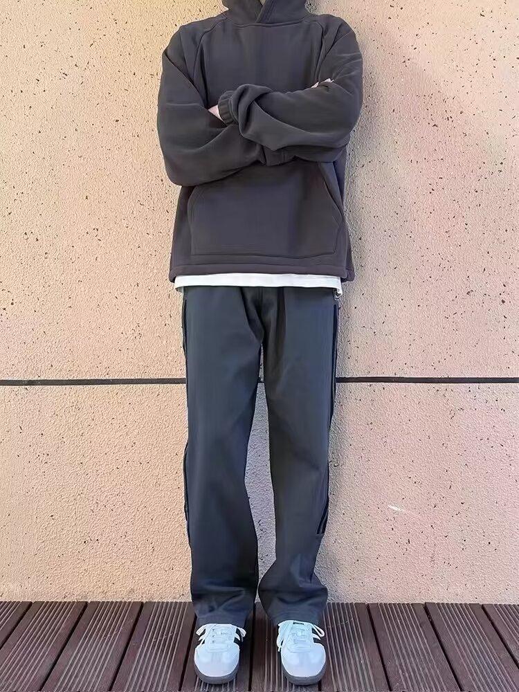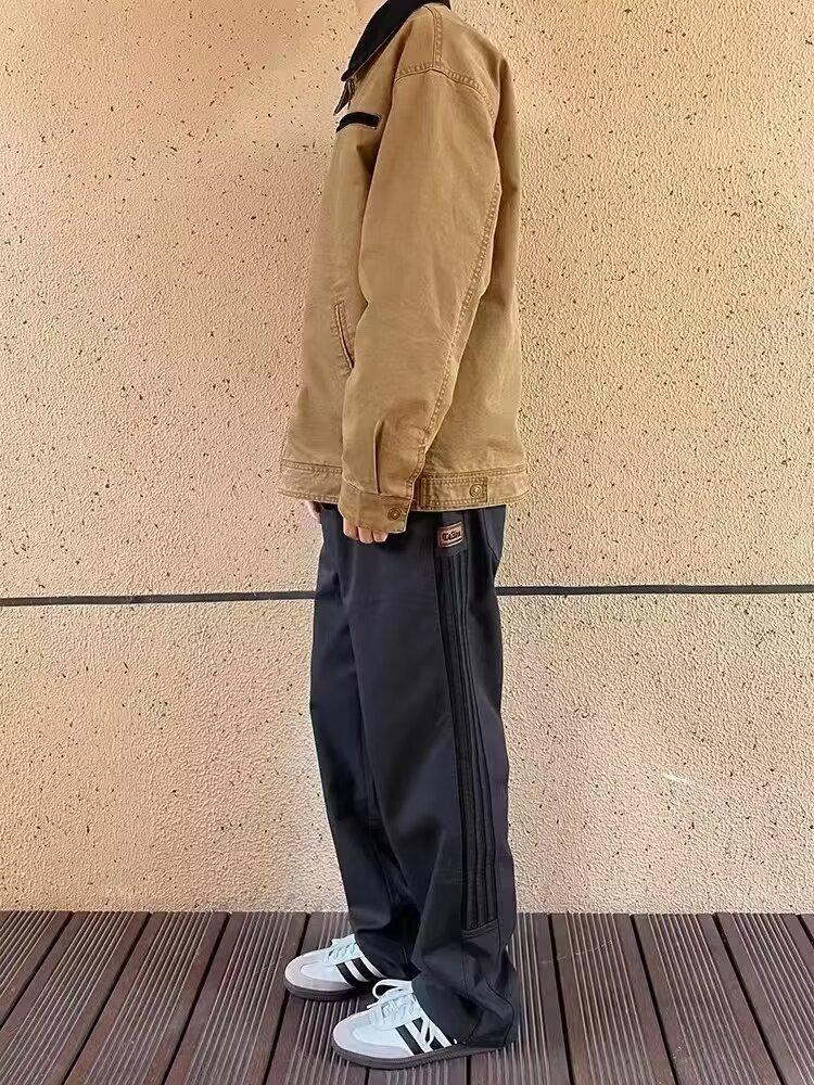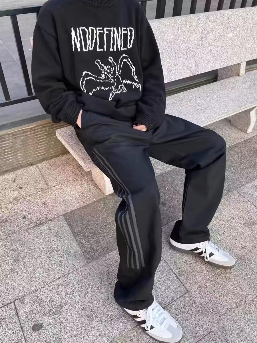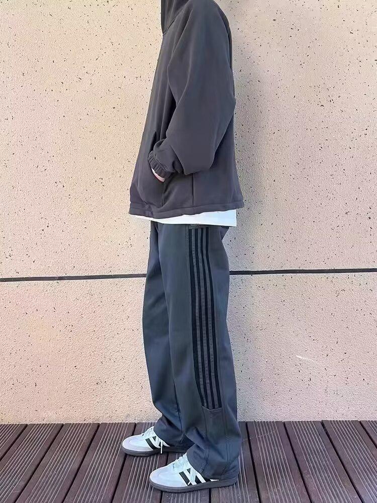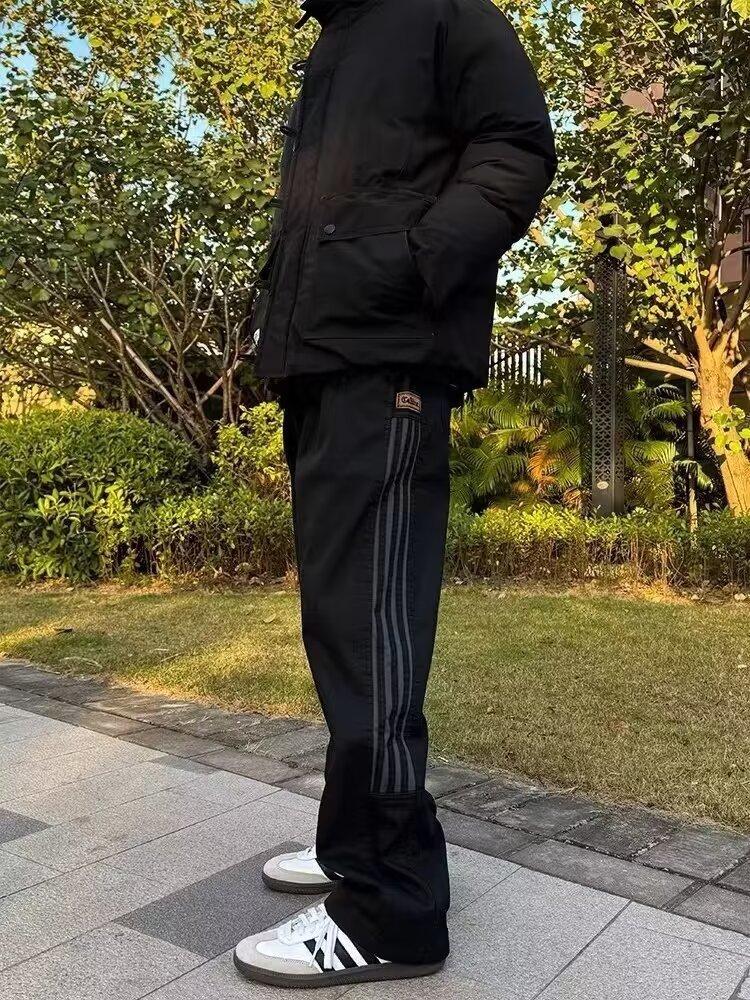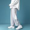 Calças casuais de listra lateral retrô verão e outono novas calças masculinas elegantes e bonitas para todos os jogos soltas mergulhadas calças retas