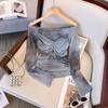 2024 outono e inverno novo francês com decote em V camisa de manga comprida design senso temperamento moda justa comutação transfronteiriça estilo europeu e americano