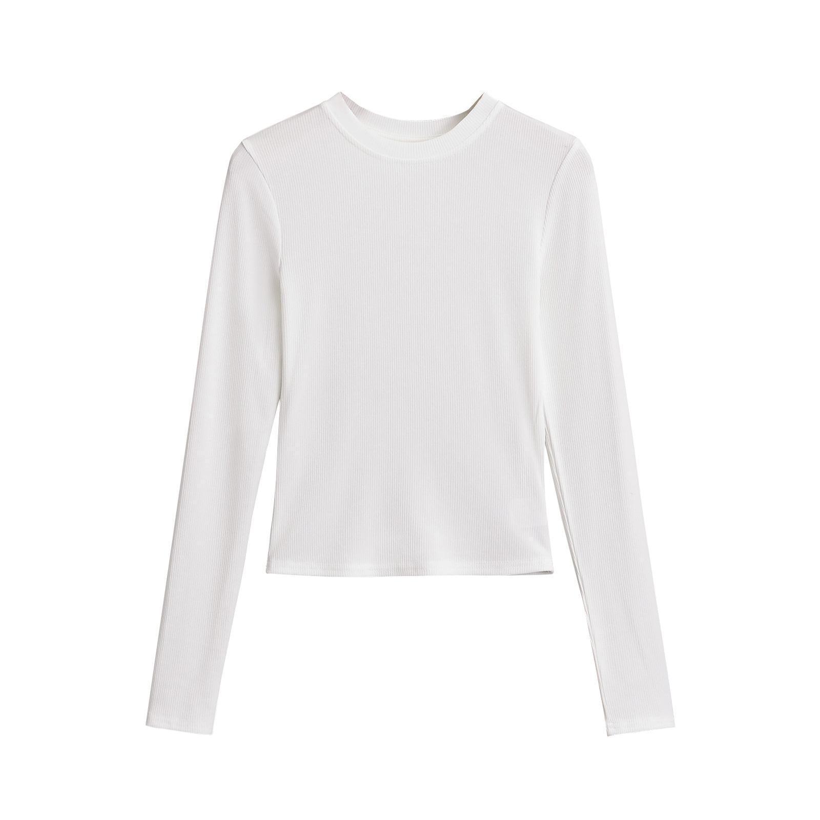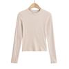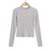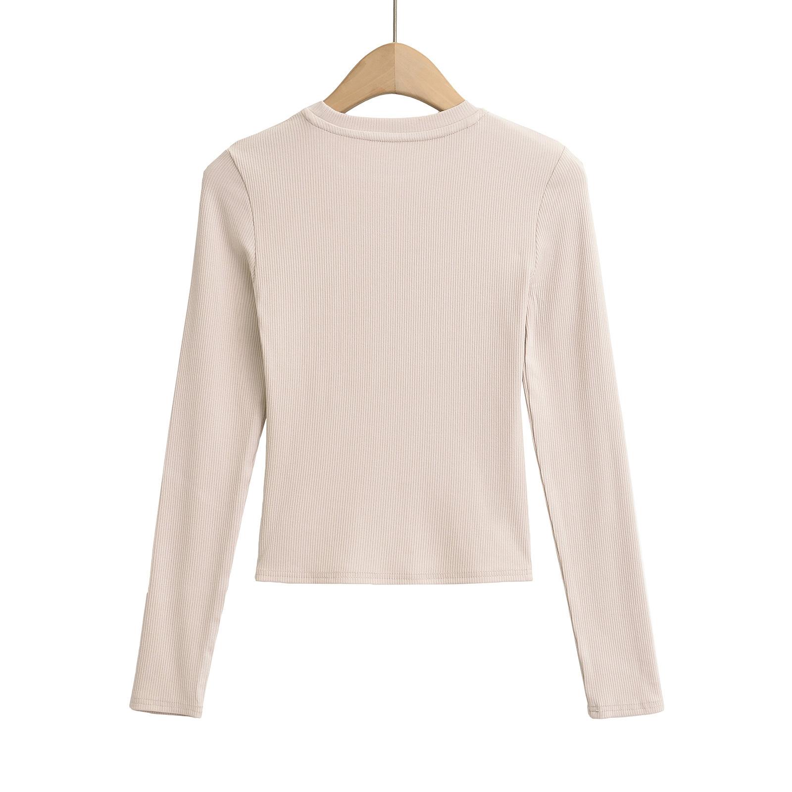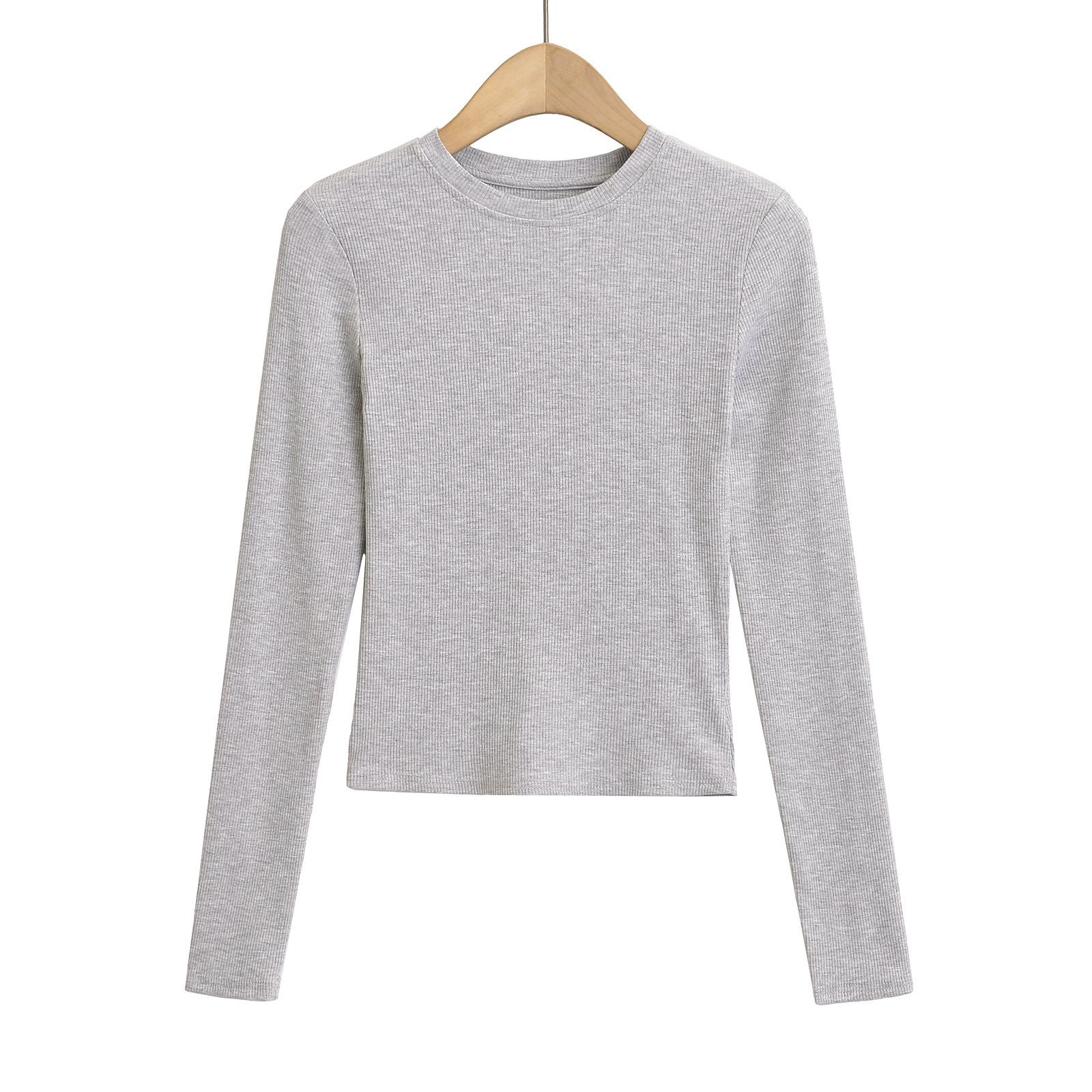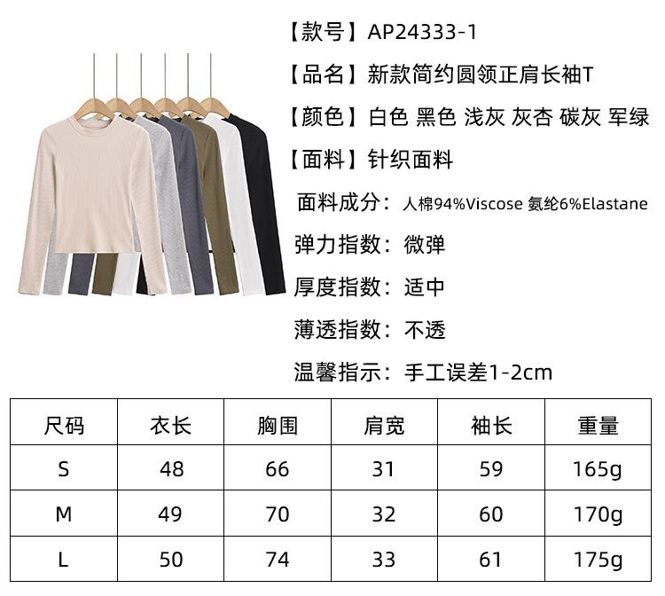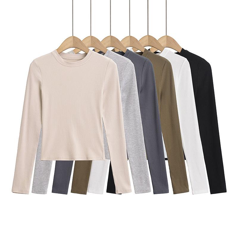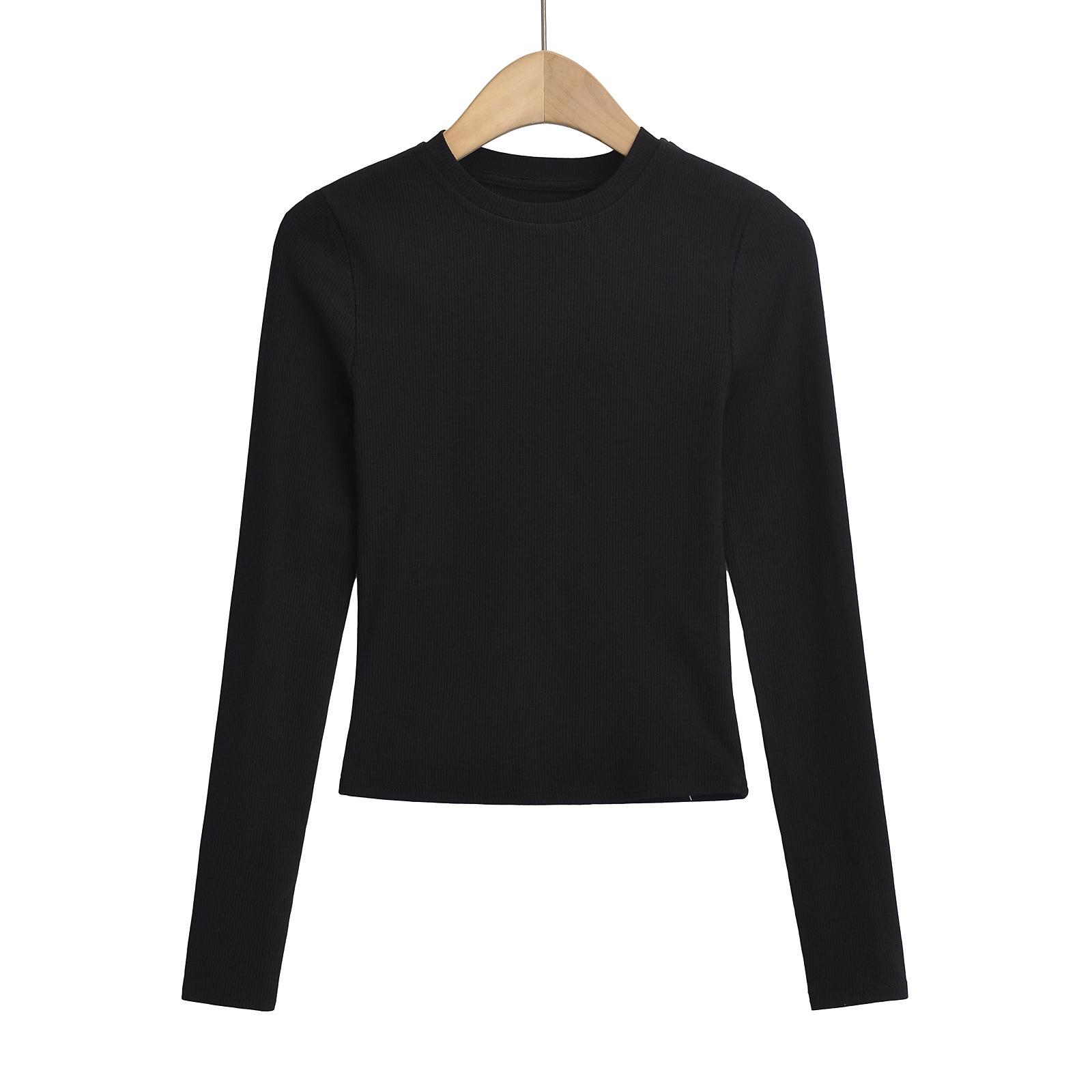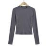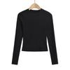 Outono 2024 Novo Estilo Simples Em Torno Do Pescoço Ombro Manga Comprida T-Shirt Feminina Hot Girl Estilo Sexy Elástico Slim Base Shirt