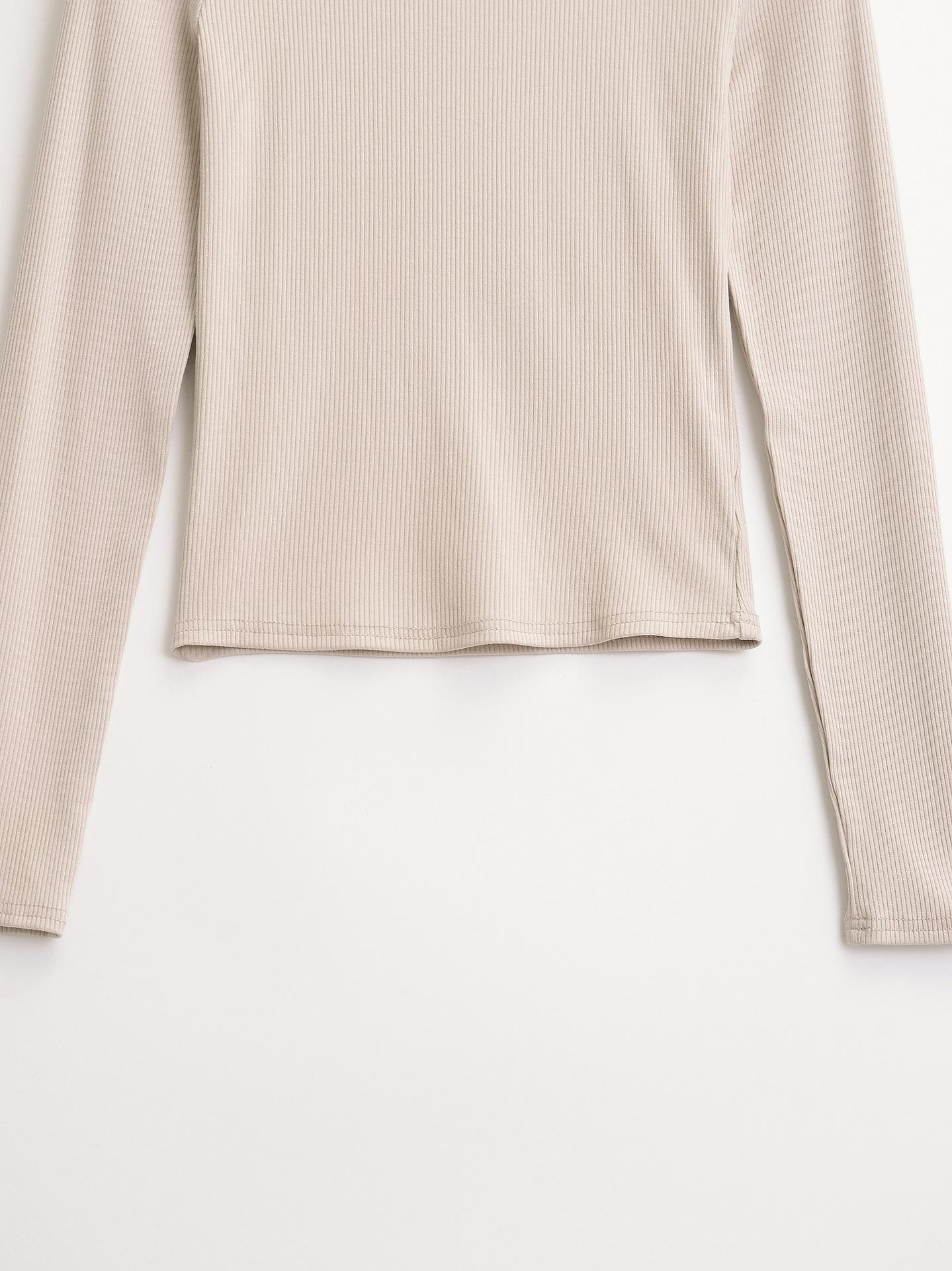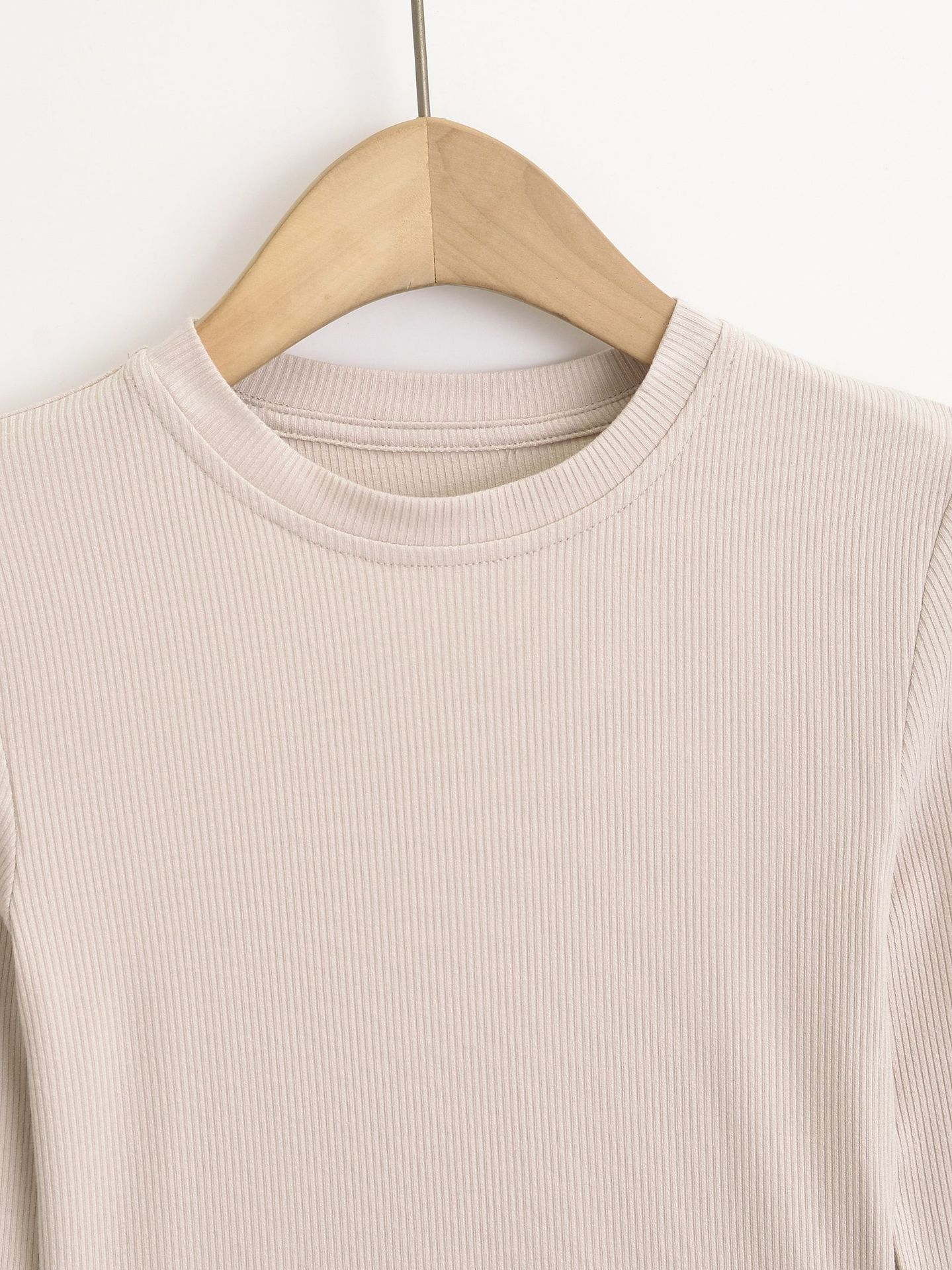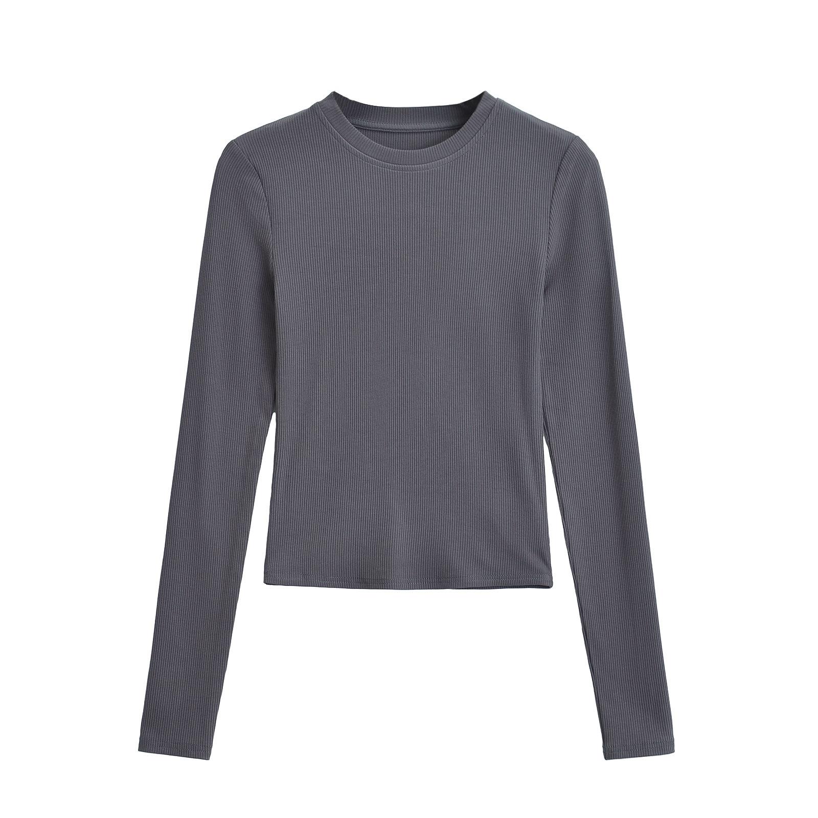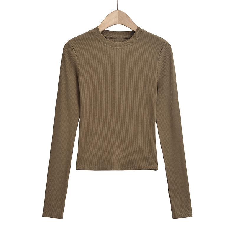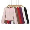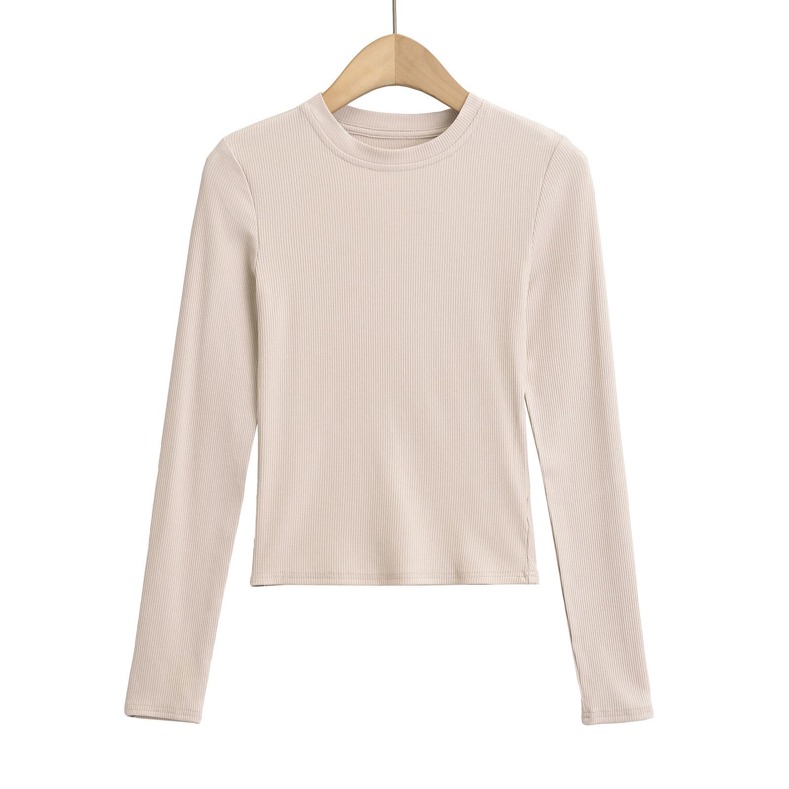 Outono 2024 Novo Estilo Simples Em Torno Do Pescoço Ombro Manga Comprida T-Shirt Feminina Hot Girl Estilo Sexy Elástico Slim Base Shirt