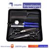 Simple flat cut, Simple dental scissors, Flat toothed bag, Flat, teeth, bag, comb and leather 5-piece set