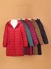 2025 Novo Casaco de Penas Leve com Capuz Removível Comprimento Médio Feminino Tamanho Plus Zíper Leve Ajustado Roupa Exterior