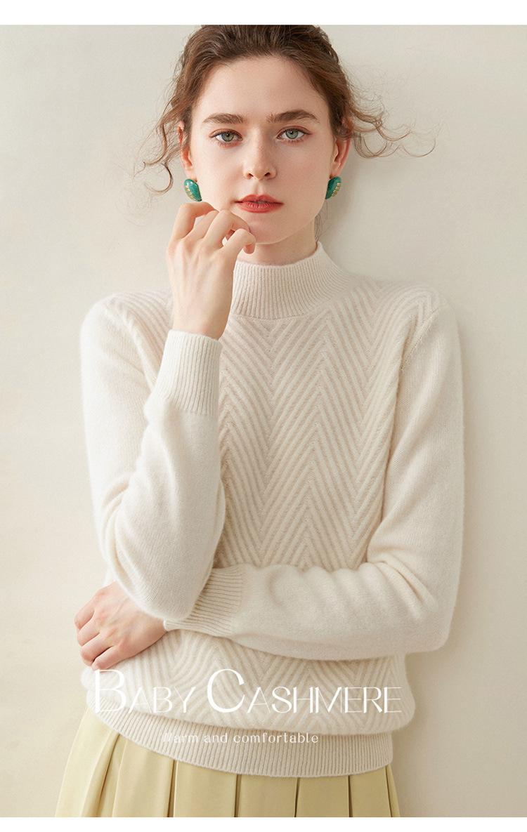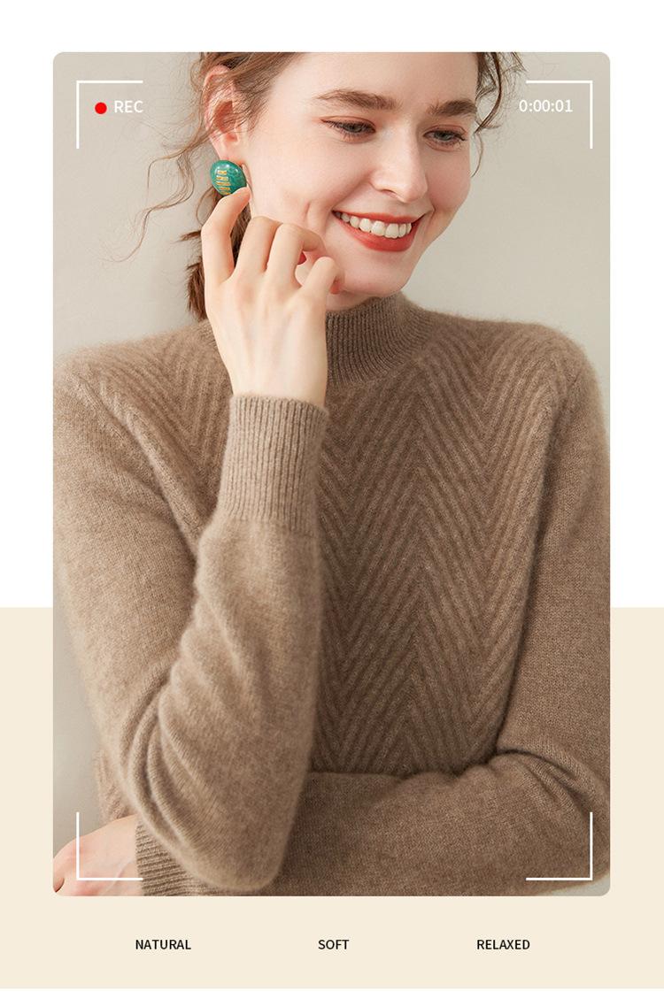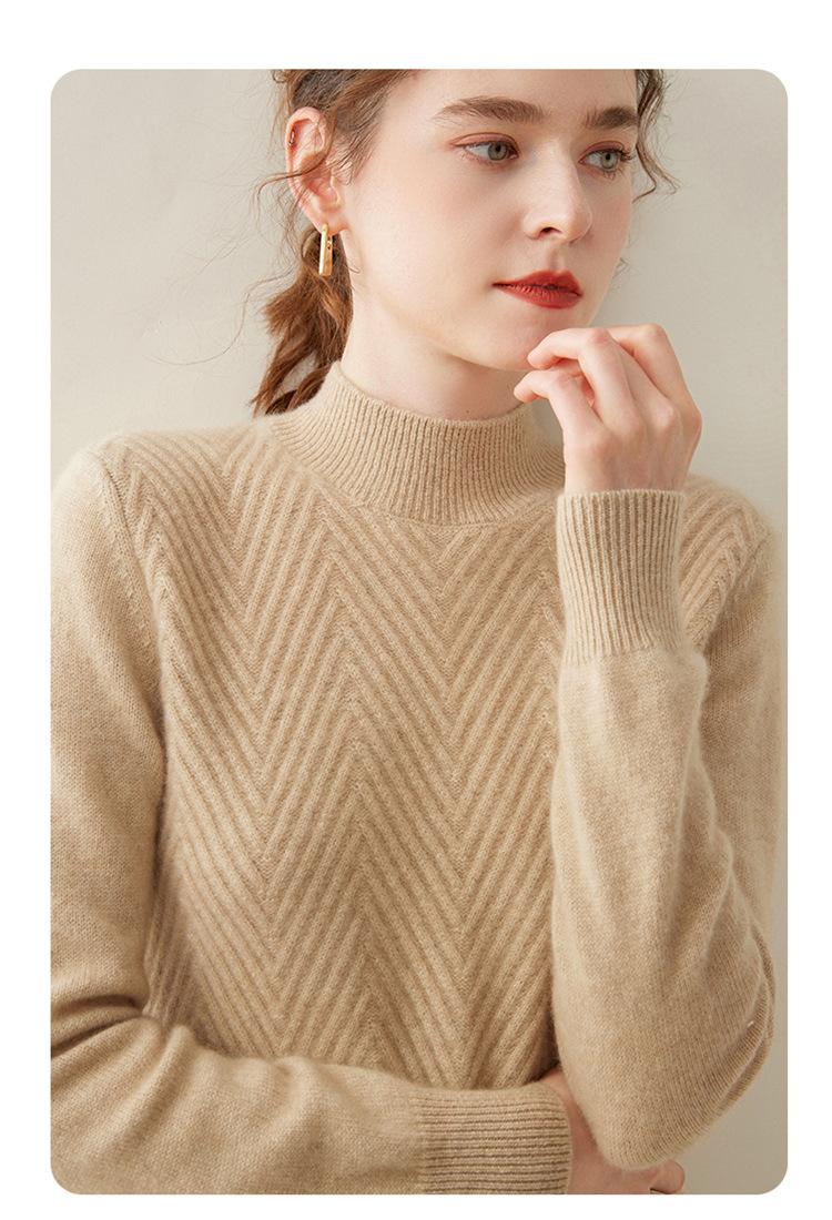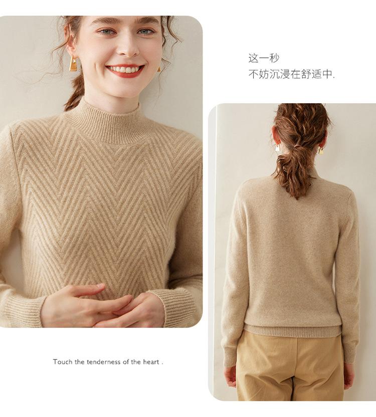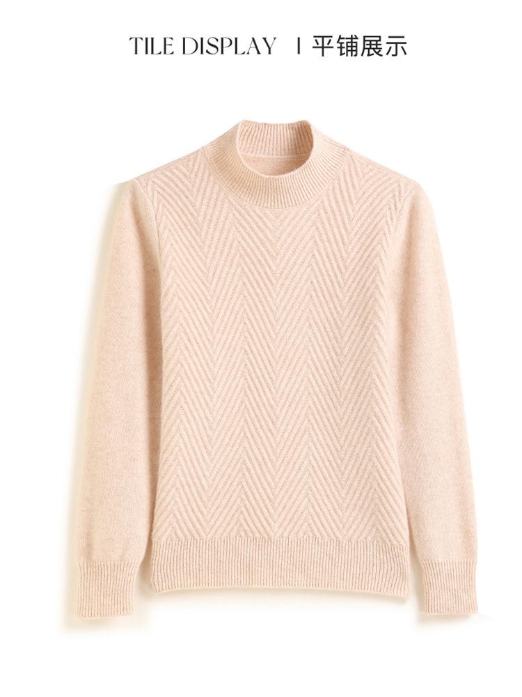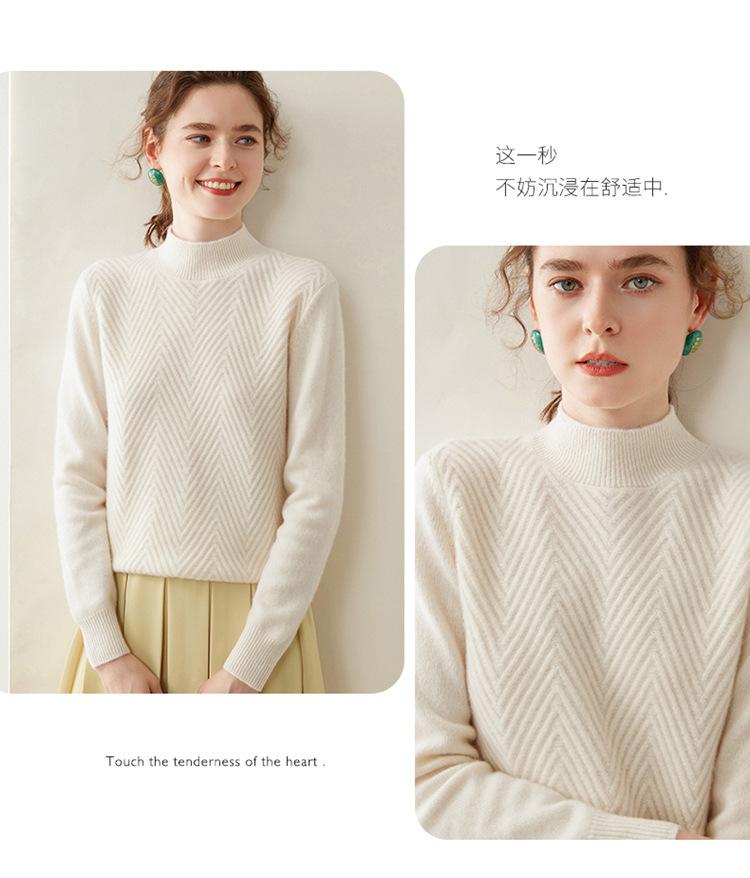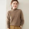 Camisa de base de malha de cashmere de manga comprida feminina de manga comprida com gola meia alta solta suéter fino cor sólida quente e confortável