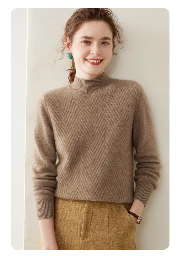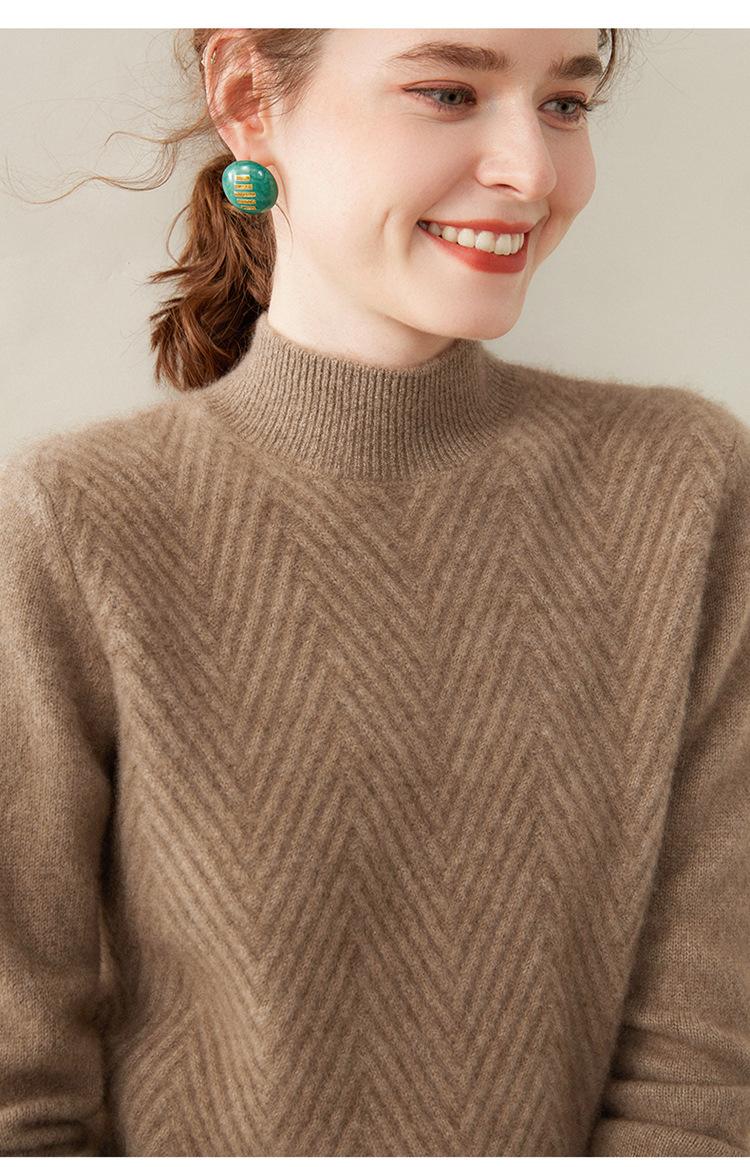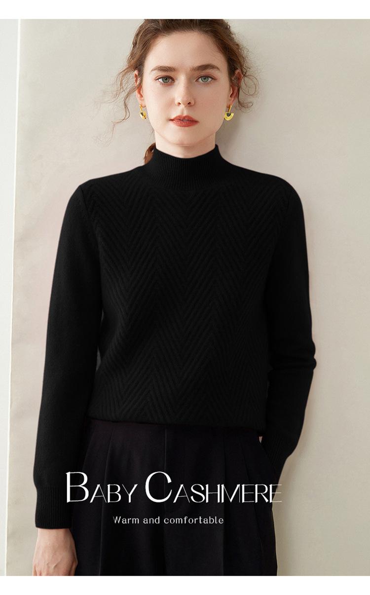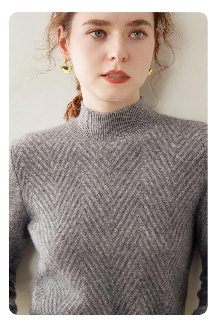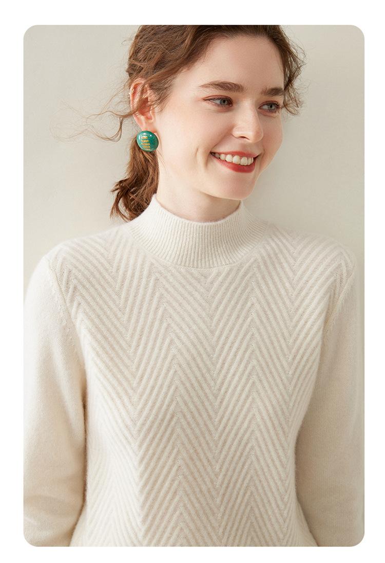 Camisa de base de malha de cashmere de manga comprida feminina de manga comprida com gola meia alta solta suéter fino cor sólida quente e confortável