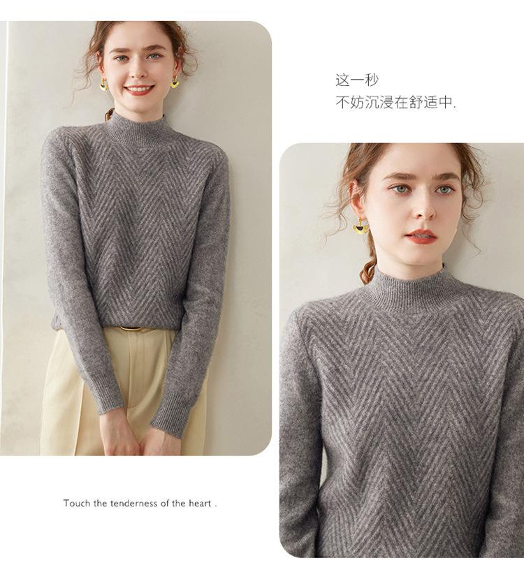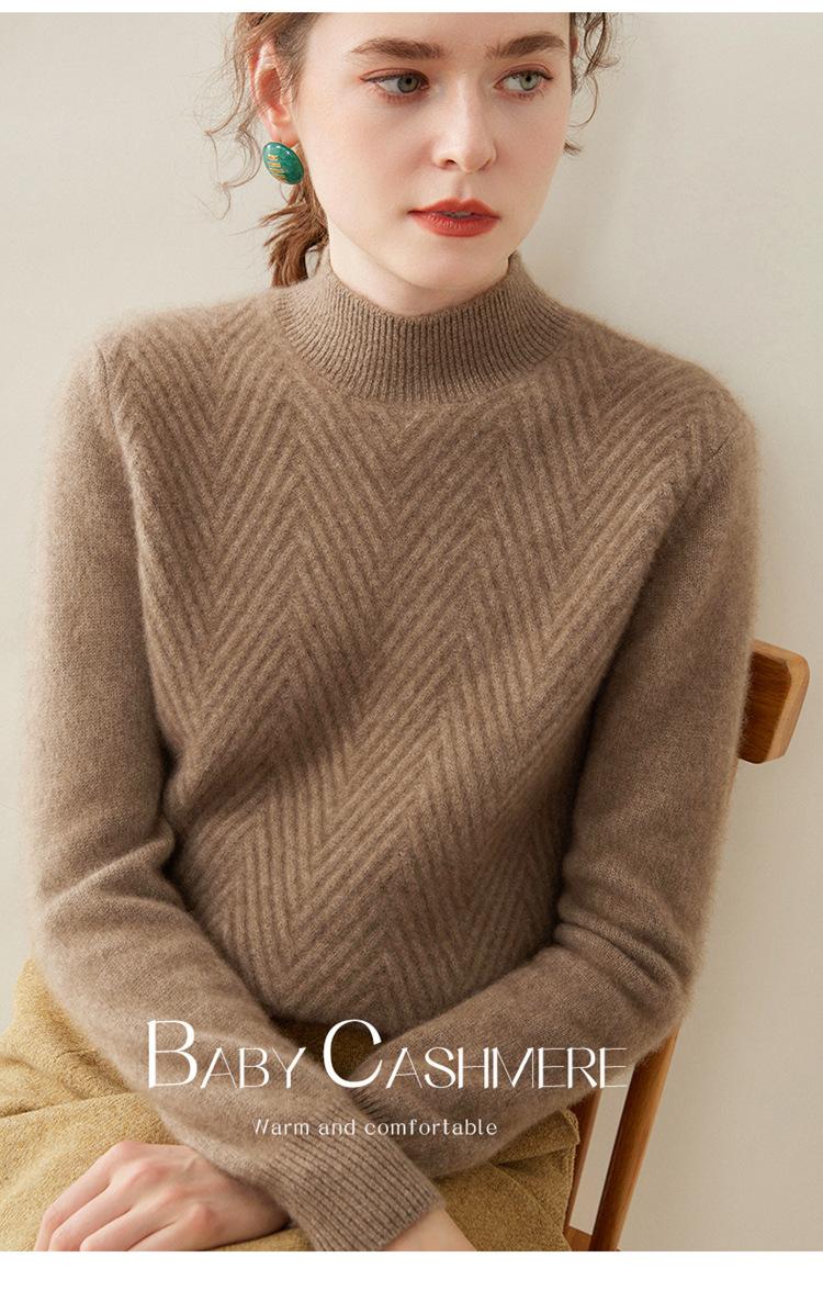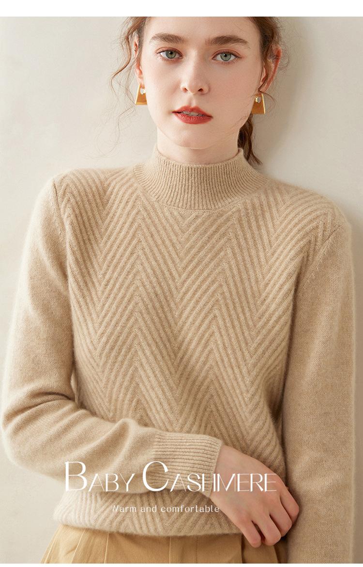 Compre Camisa de base de malha de cashmere de manga comprida feminina de manga comprida com gola meia alta solta suéter fino cor sólida quente e confortável no atacado no Joom.pro