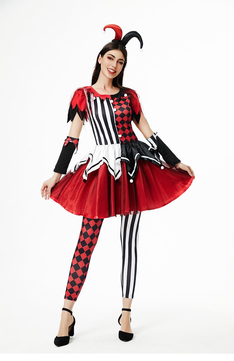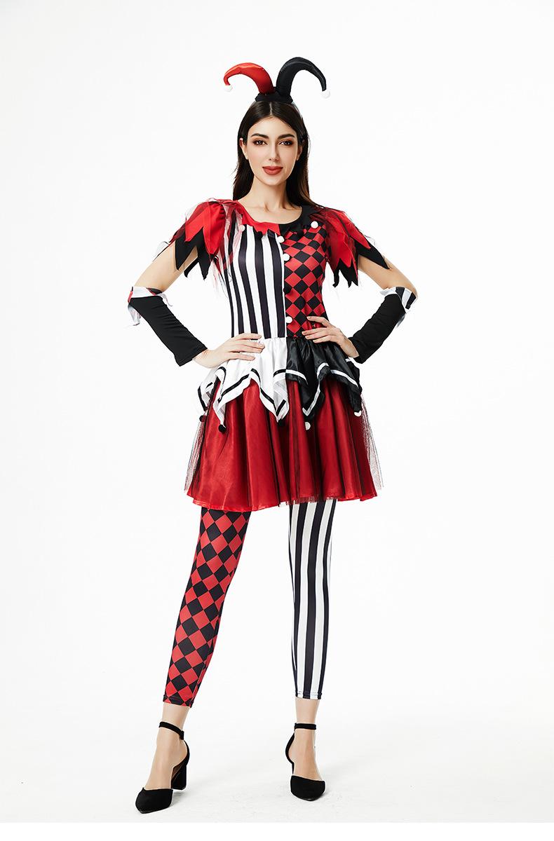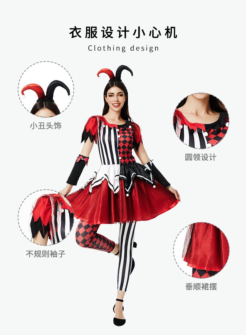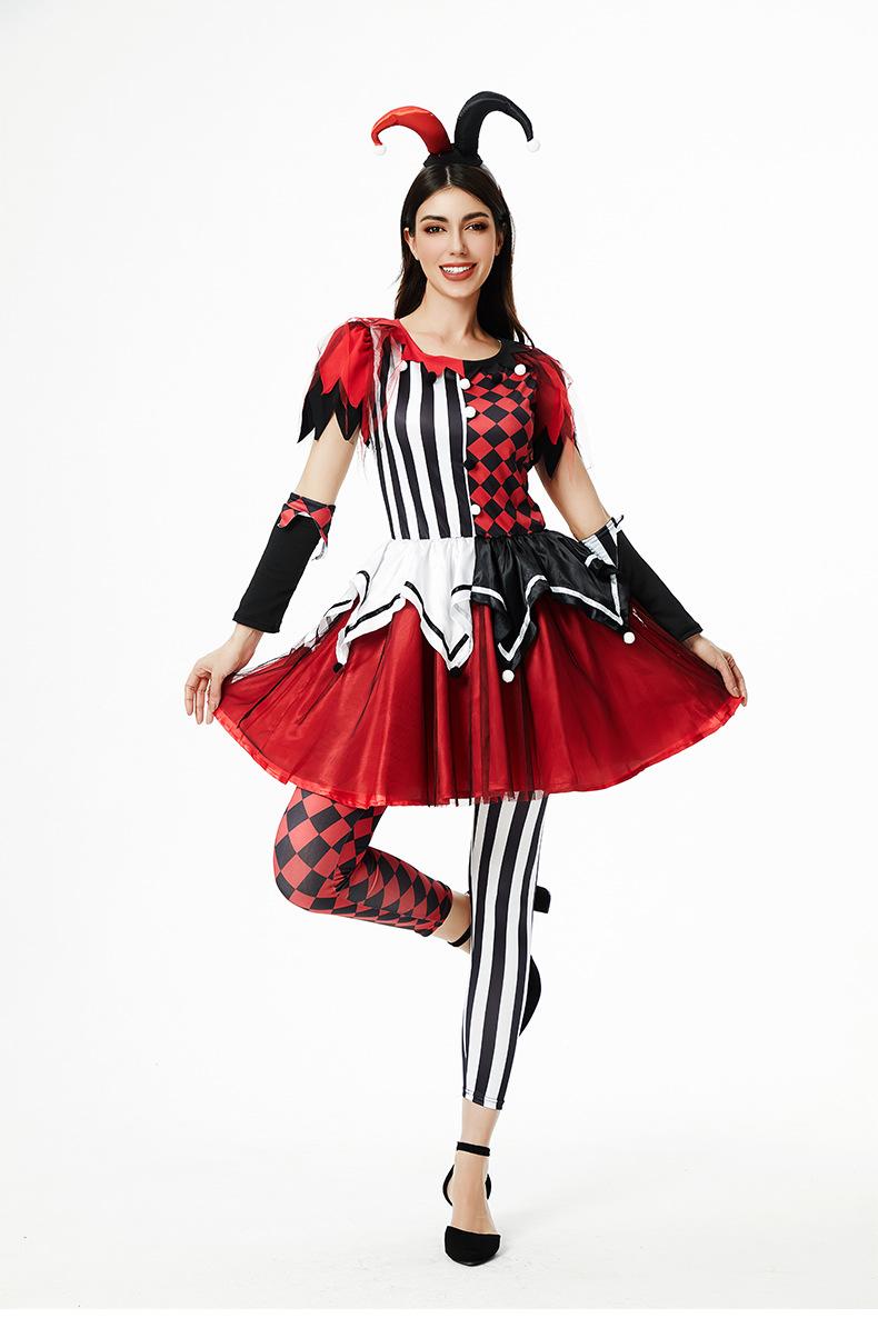 Fantasia de Halloween Circo Palhaço Fantasma Fantasia Cosplay Vestido Feminino Fantasia para Apresentação de Palco de Carnaval