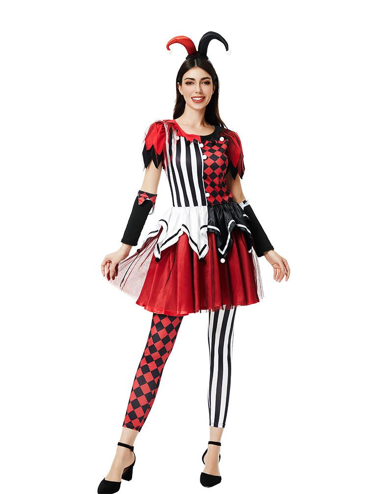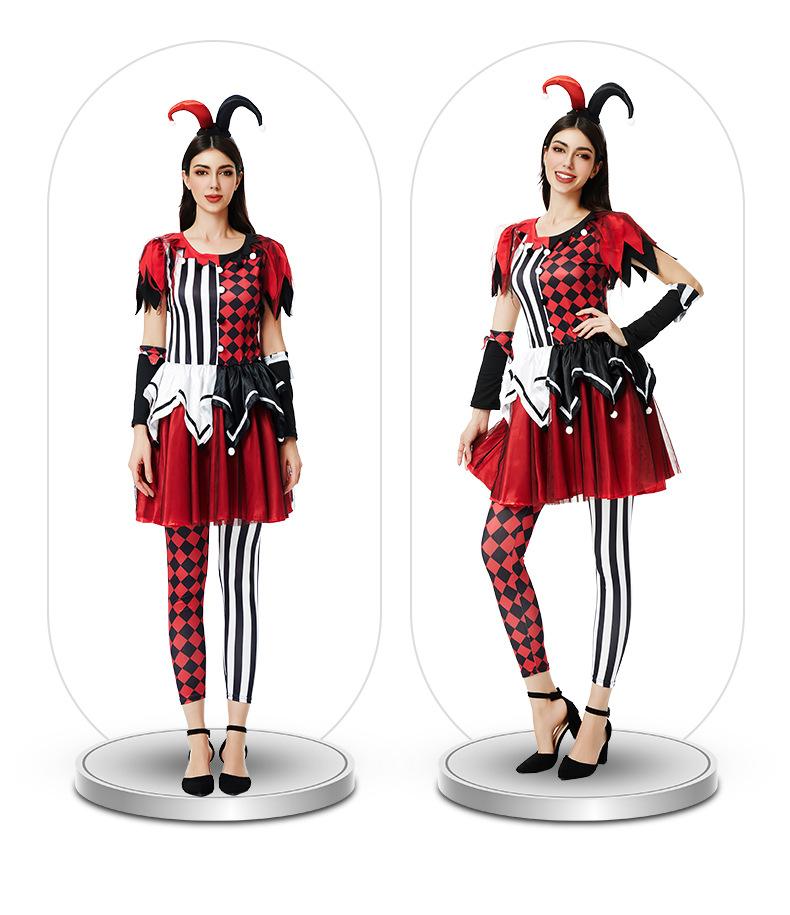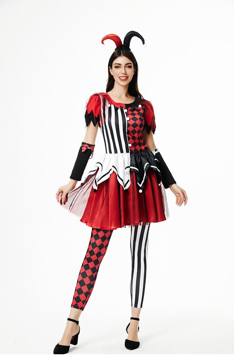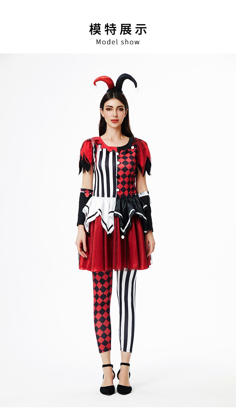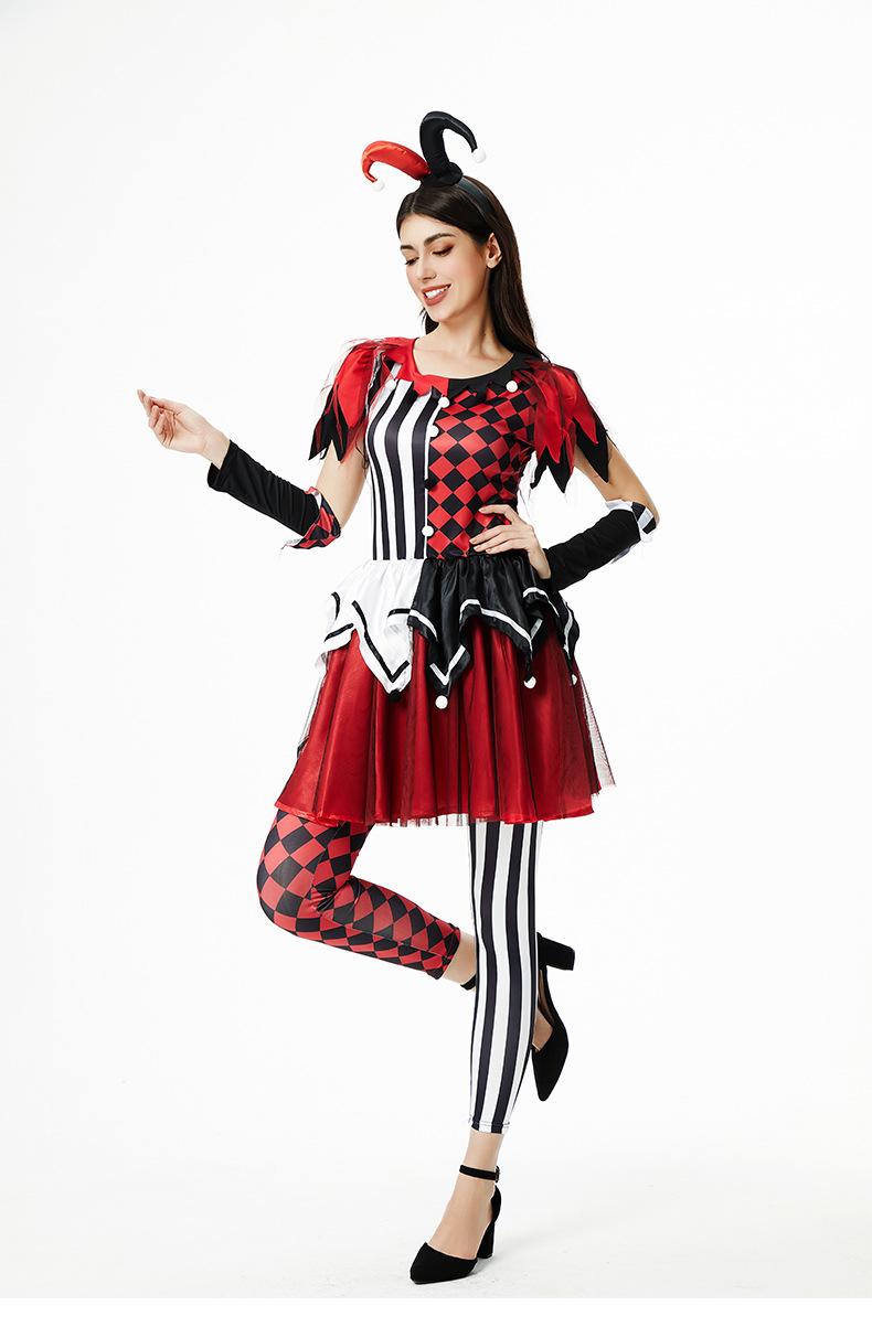 Fantasia de Halloween Circo Palhaço Fantasma Fantasia Cosplay Vestido Feminino Fantasia para Apresentação de Palco de Carnaval