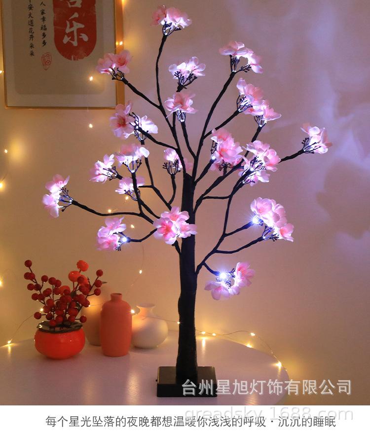 Lâmpada de Árvore de Flor de Ameixeira Led Mais Vendida Transfronteiriça Presente Quarto Cabeceira Ambiente de Quarto Luz Noturna Decorativa USB