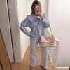 Roupas femininas de estilo europeu e americano, comércio exterior transfronteiriço, nova moda, gola de boneca de renda, estampa de leopardo, camisa curta de manga comprida