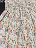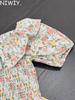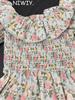Vestido Francês Doce Decote Quadrado ombro a ombro Floral Manga Bufante Verão Suado Elástico Cintura Plissada Vestido Retrô