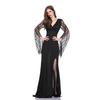 Real tiro Halloween morte fantasma noiva bruxa demônio vampiro uniforme vestido longo profundo V vestido preto festa de baile