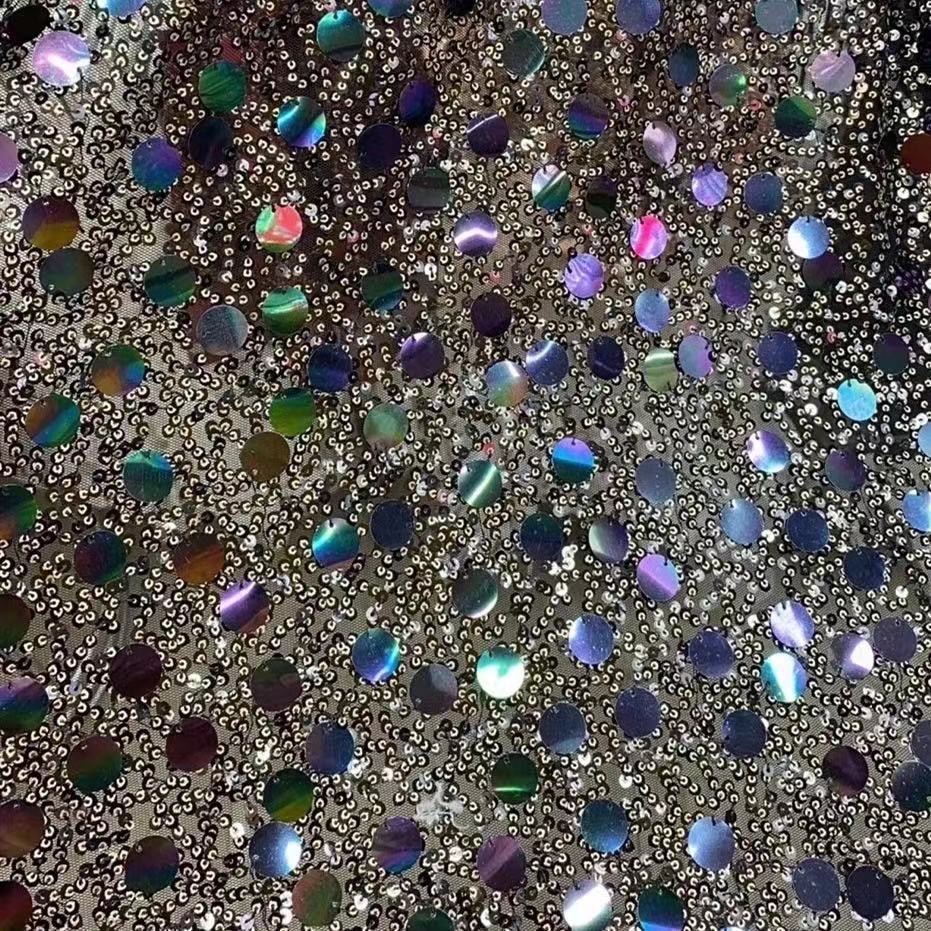 Tecido Bordado com Lantejoulas Spot Mesh 3+18mm Tecido de Renda Bordado com Lantejoulas Roupa de Palco Vestido de Noiva Material para Sapatos Bagagem