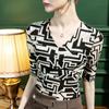 Comércio exterior Chic Decote em V Camiseta de manga curta feminina Verão Simples Elegante com Design de manga de ombro Top de costura de renda