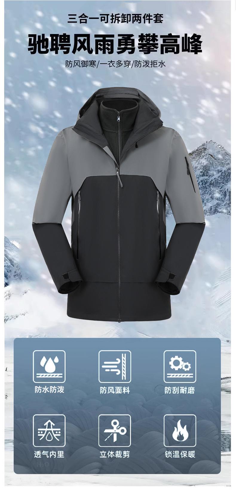 Jaqueta para Homens e Mulheres, Três-Em-Um Impermeável, À Prova de Vento, Forrada com Lã, Casaco Quente para Esqui e Montanhismo