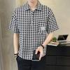 2023 novo estilo verão padrão literário POLO camisa masculina Harajuku diário cinco pontos manga juventude tendência da moda