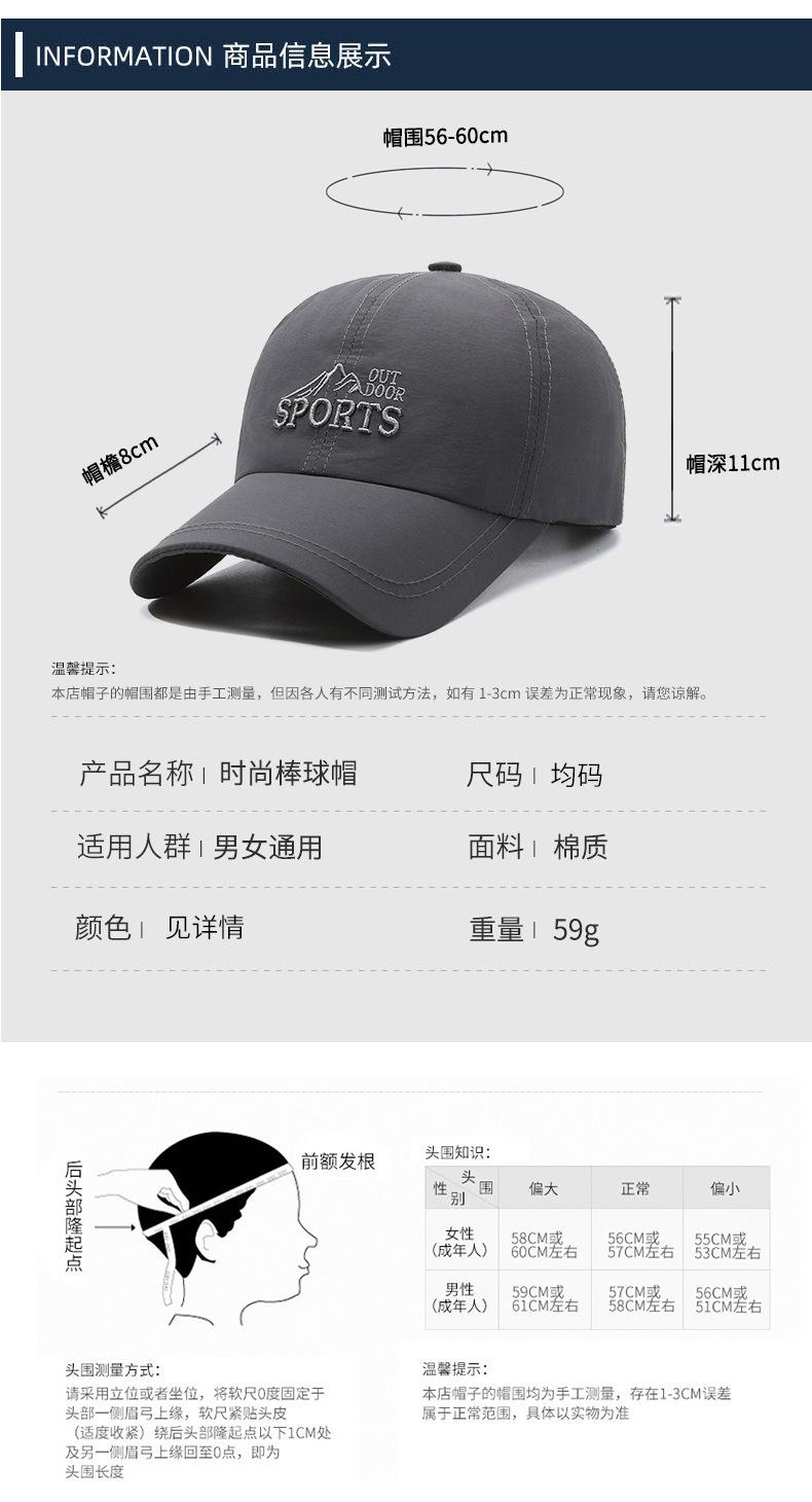 Chapéu Masculino Verão ao ar livre Sun Hat moda respirável Baseball Cap Simple Cap Quick-drying Sports Hat Sun Hat