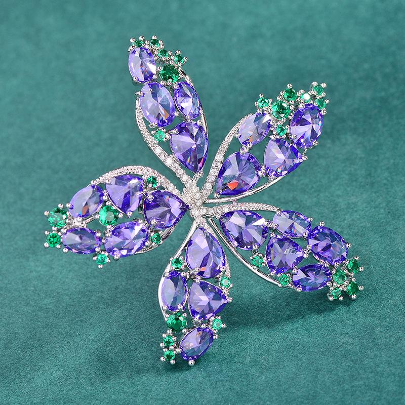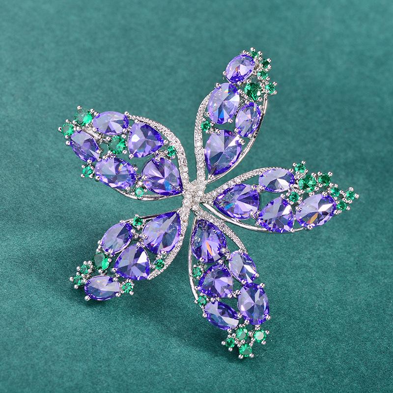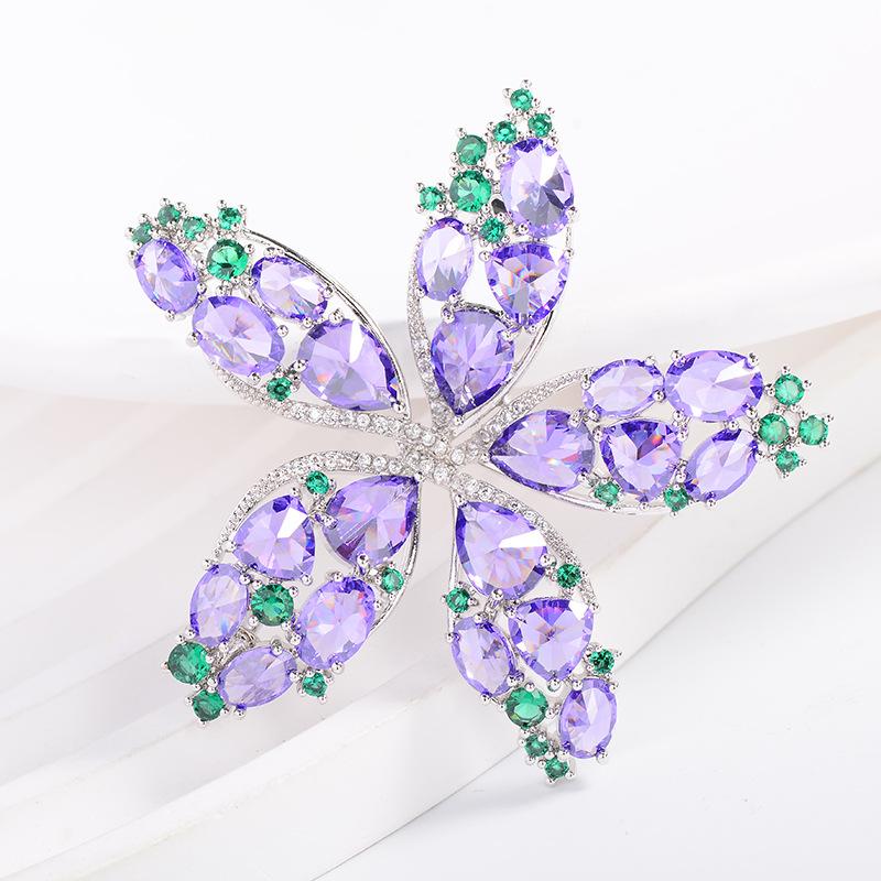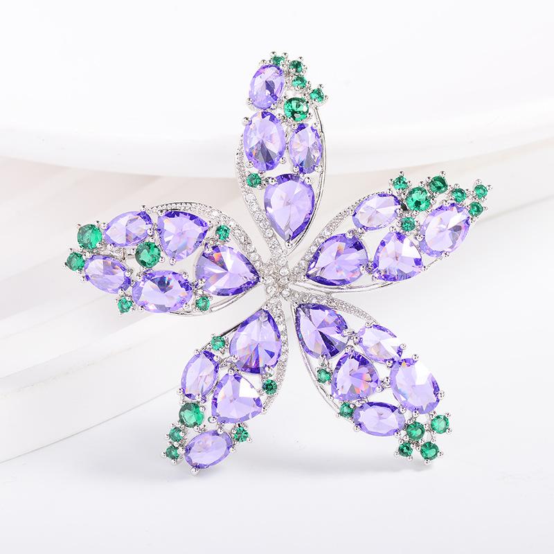 Europeu e Americano de Luxo Elegante Borboleta Flor Broche Nicho Feminino Design Sense Five-pétala Flor Corpete Casaco Terno High-end Pin