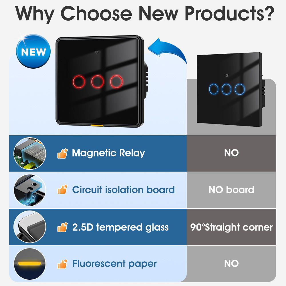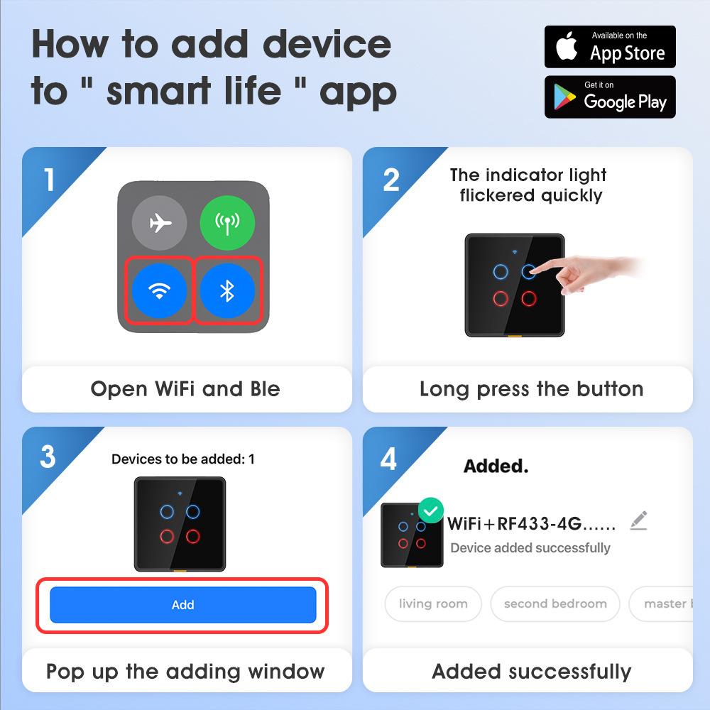 Além de voz e telefone celular, nossos switches também suportam controle remoto RF433, com uma distância de detecção ultralonga de 100 metros sem barreiras. Uma variedade de métodos de controle estão disponíveis para você escolher.