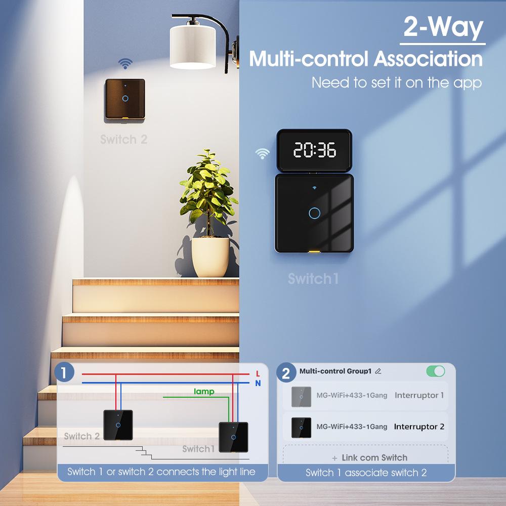 A função de associação multicontrole permite desligar ou ligar vários interruptores inteligentes com um clique, evitando o desperdício de energia causado pelo esquecimento de desligar os interruptores. Por exemplo, ao sair de casa, você só precisa desligar todos os interruptores inteligentes com um clique no APP móvel para garantir que todos os equipamentos elétricos estejam desligados e economizar eletricidade. Ele fornece uma experiência de uso mais conveniente, flexível, com economia de energia, segura e confiável, tornando o gerenciamento residencial inteligente mais inteligente e eficiente.