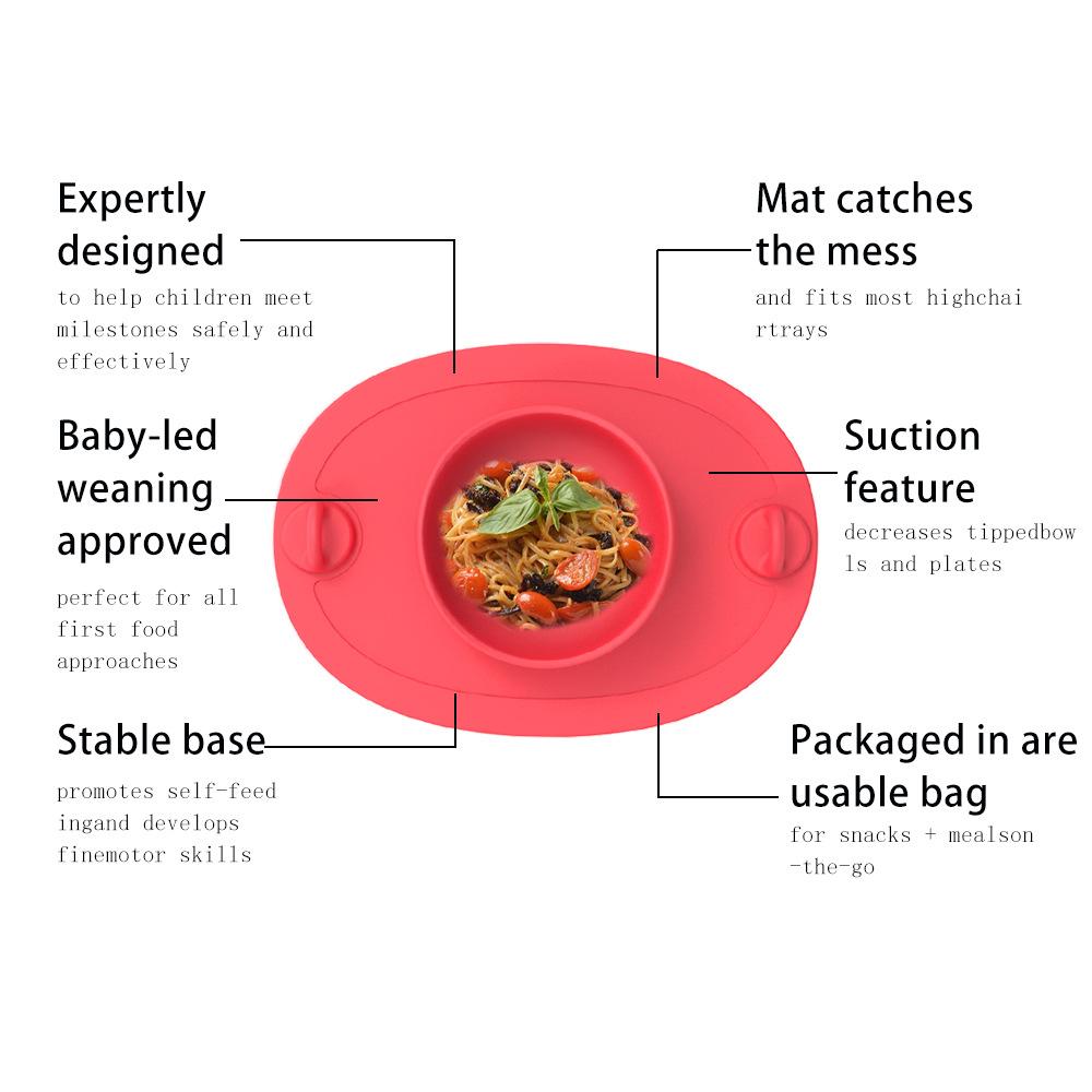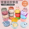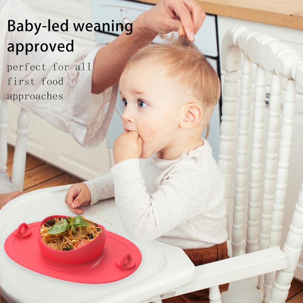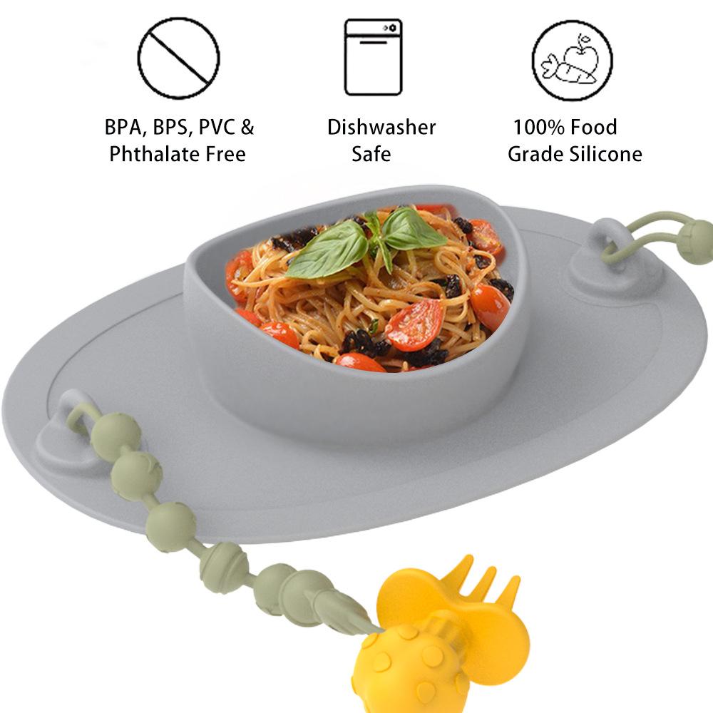 Tigela de sucção de silicone para bebês Tigela de comida de uma peça com tapete Amazon silicone Presente Alimentação Talheres