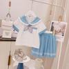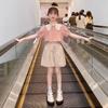 Conjunto da Moda para Meninas Celebridade da Internet 2024 Verão Novo Estilo Coreano Moda Infantil Casual Listrado de Manga Curta Duas Peças