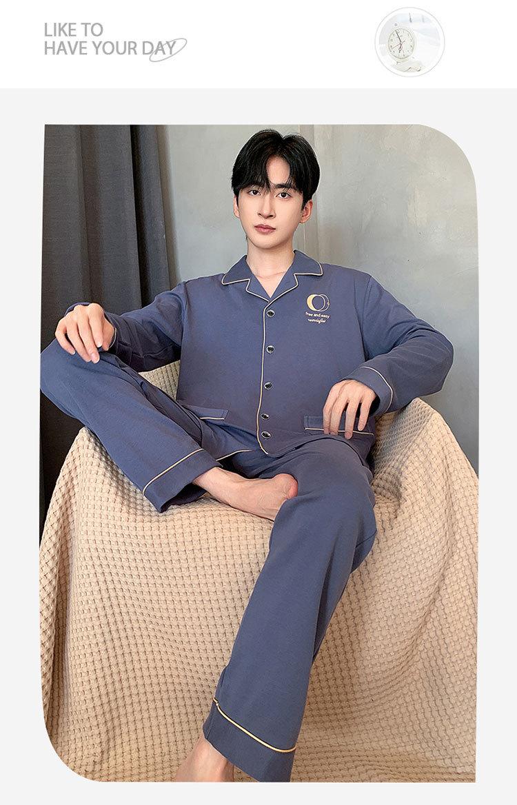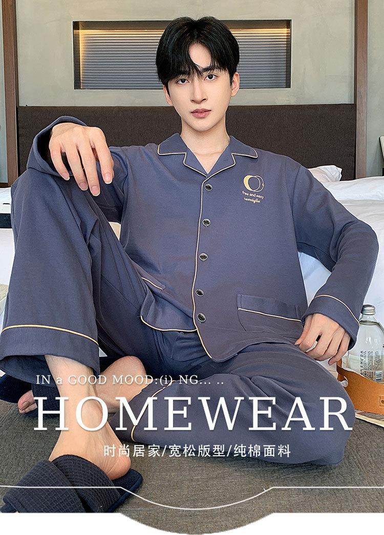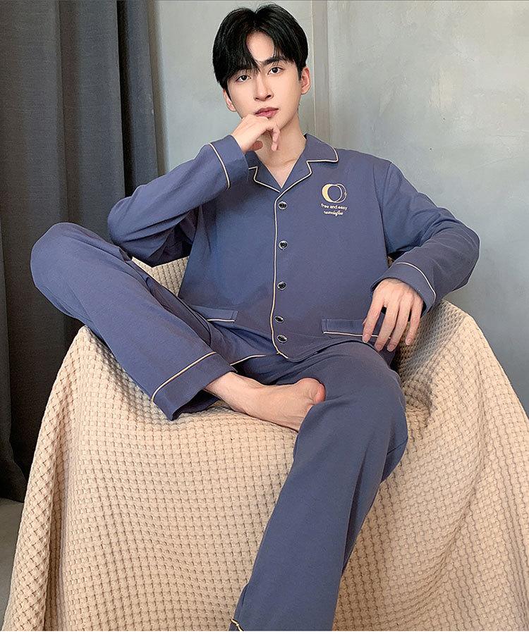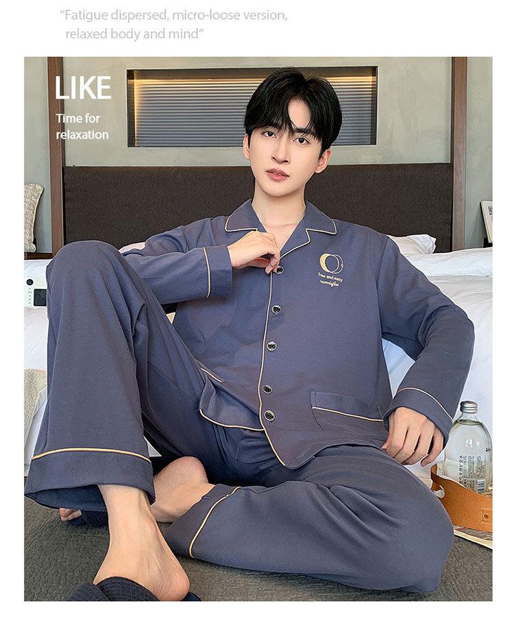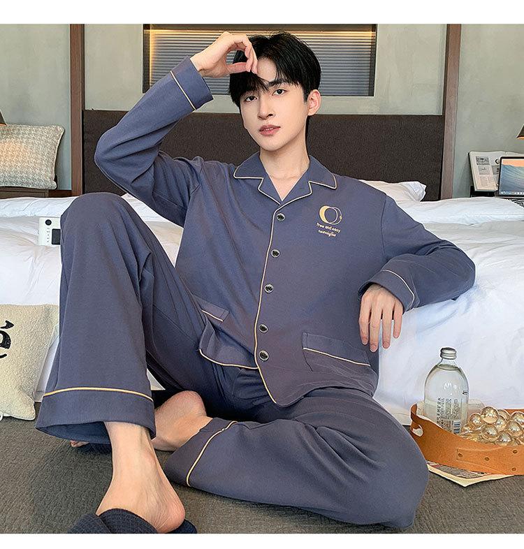 Pijama 100% algodão masculino primavera e outono novo manga comprida outono e inverno solto plus size algodão masculino roupas de casa terno