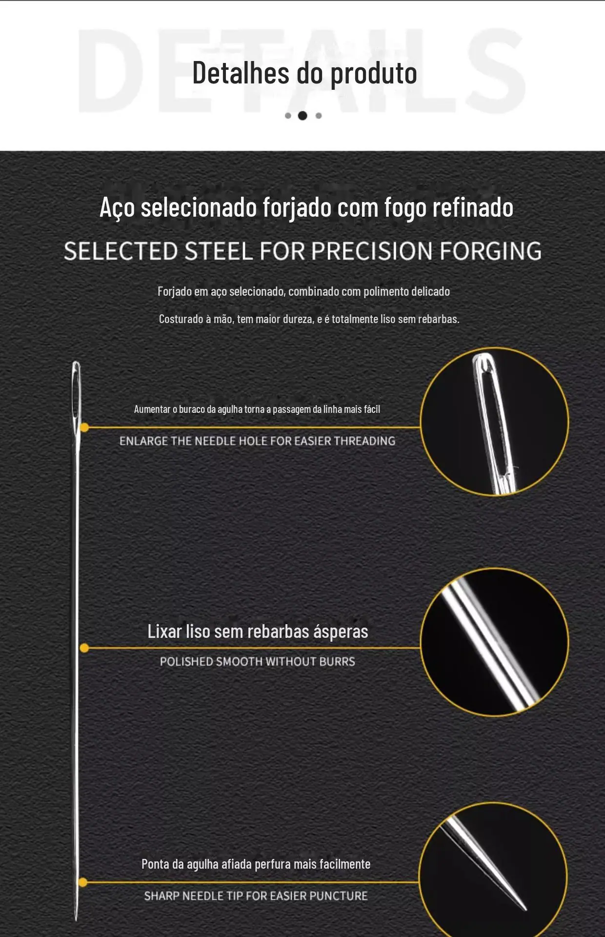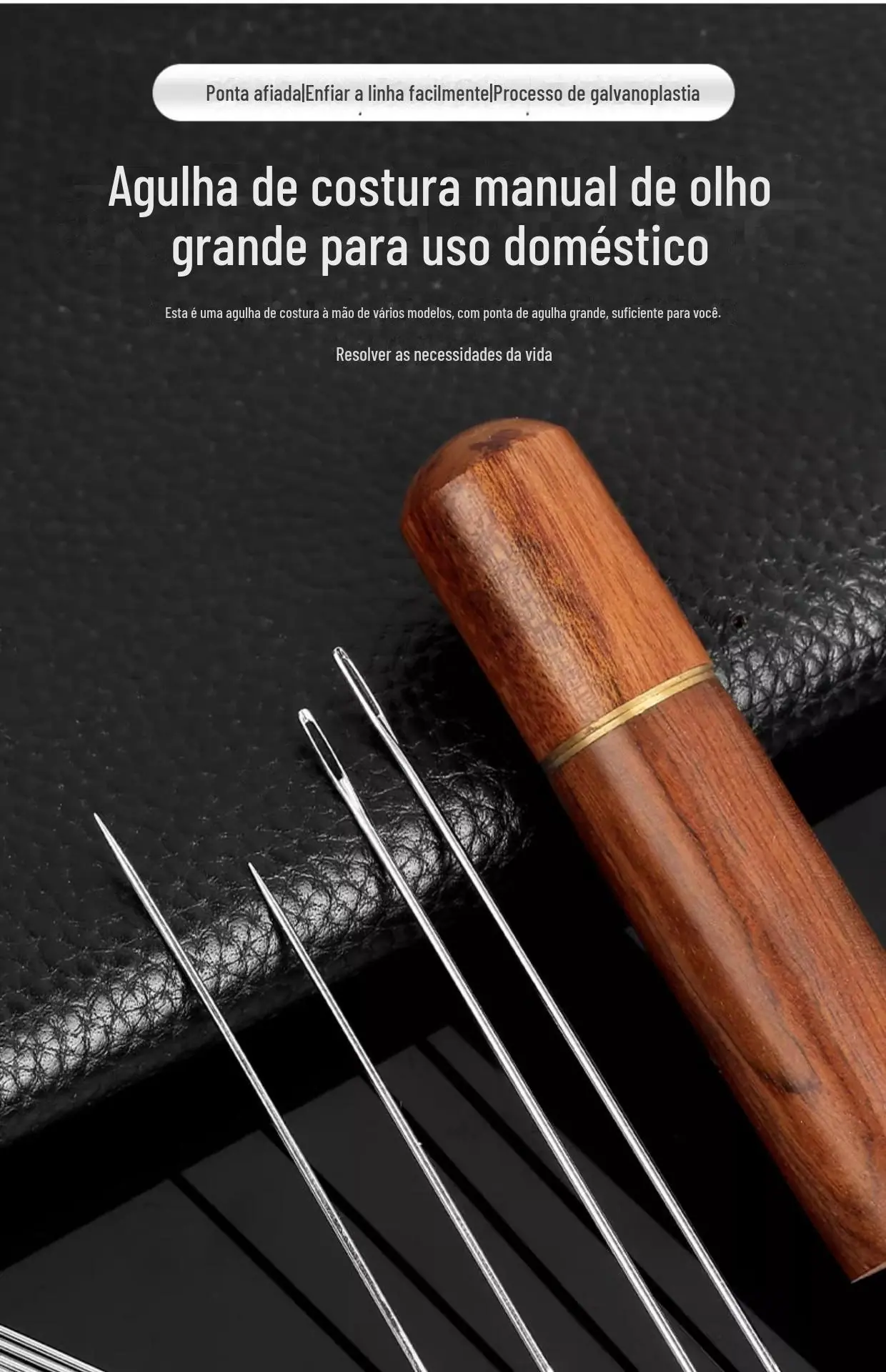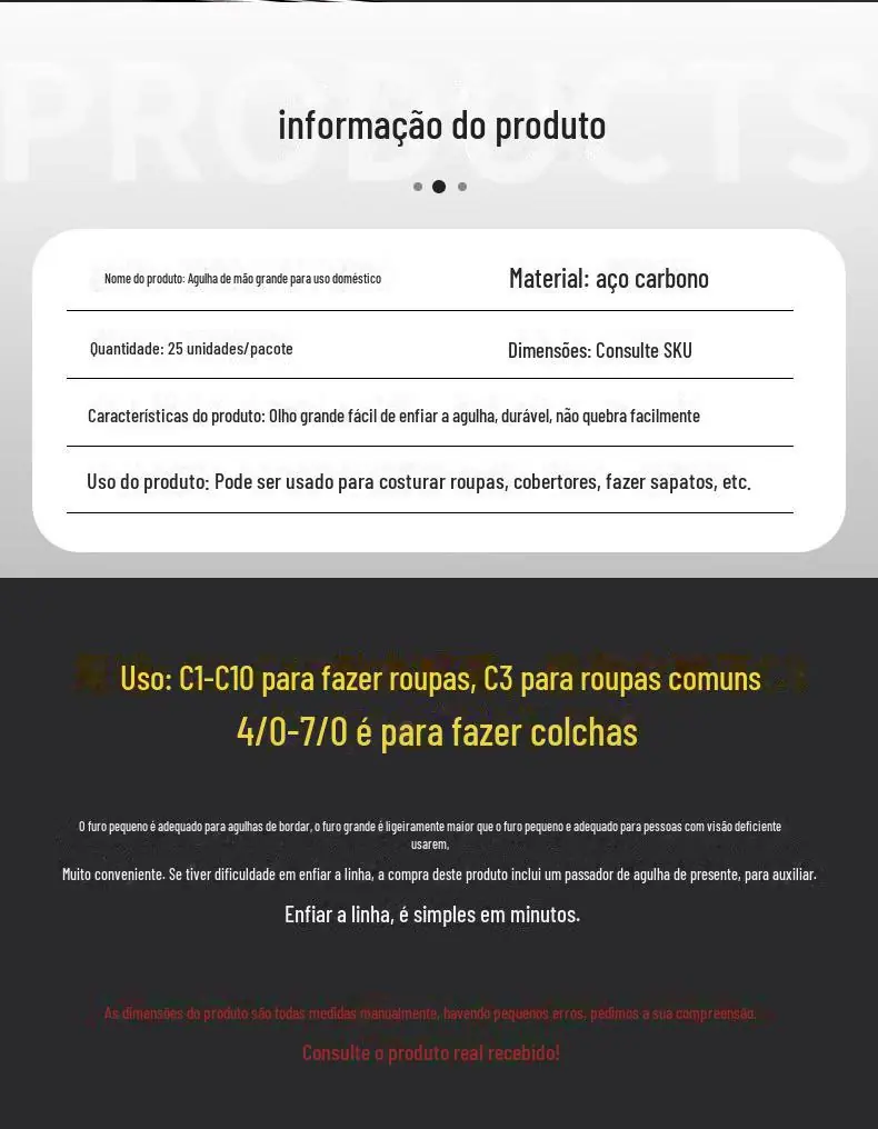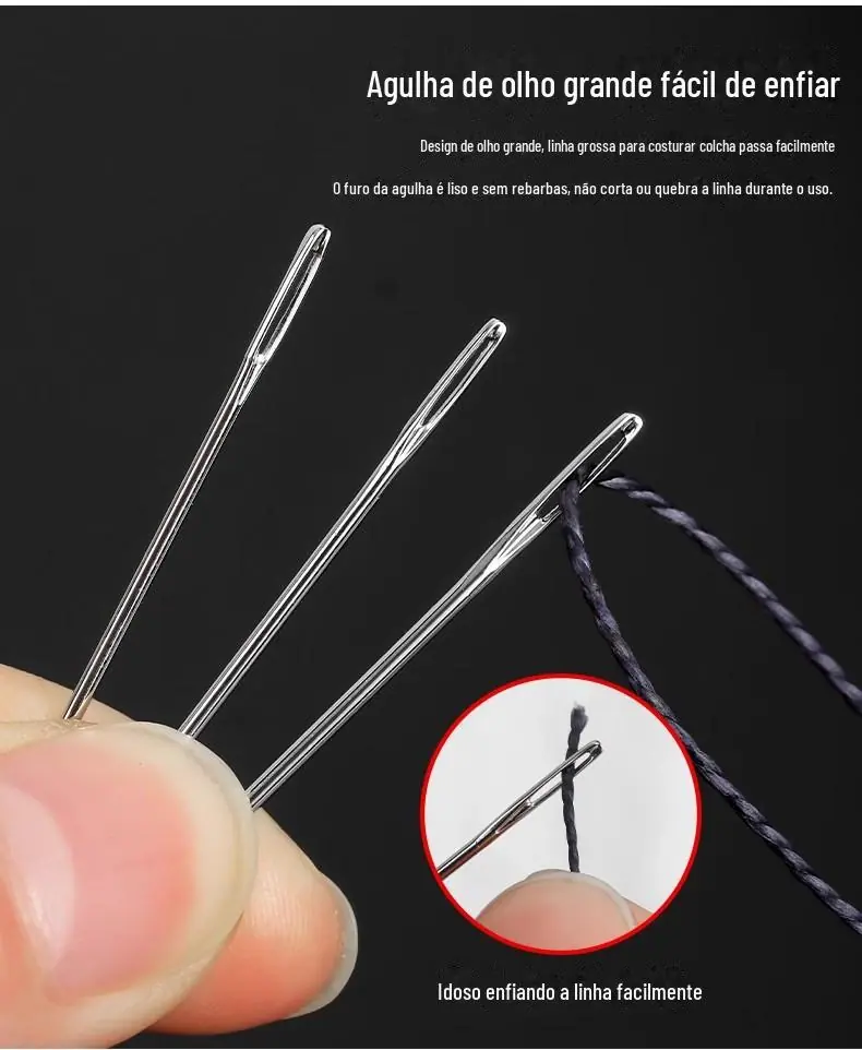 Agulha de costura à mão Agulha de furo grande para a família idosa Olhos grandes Agulha de colcha de costura tradicional delgada Agulha pequena Agulha de bordado