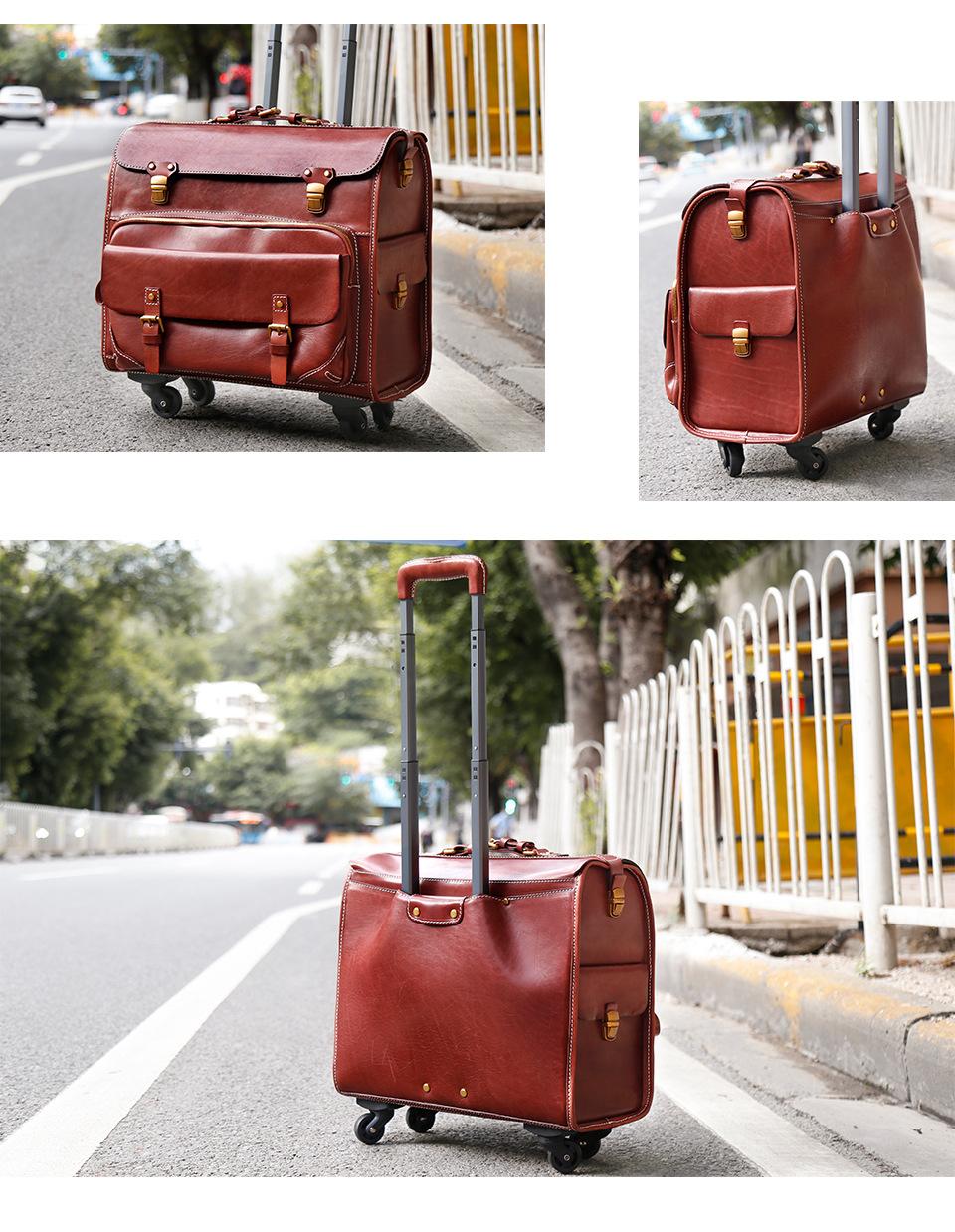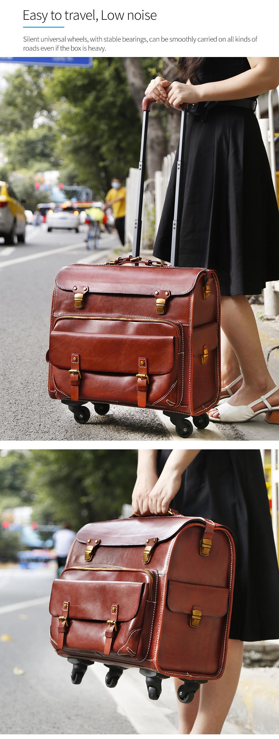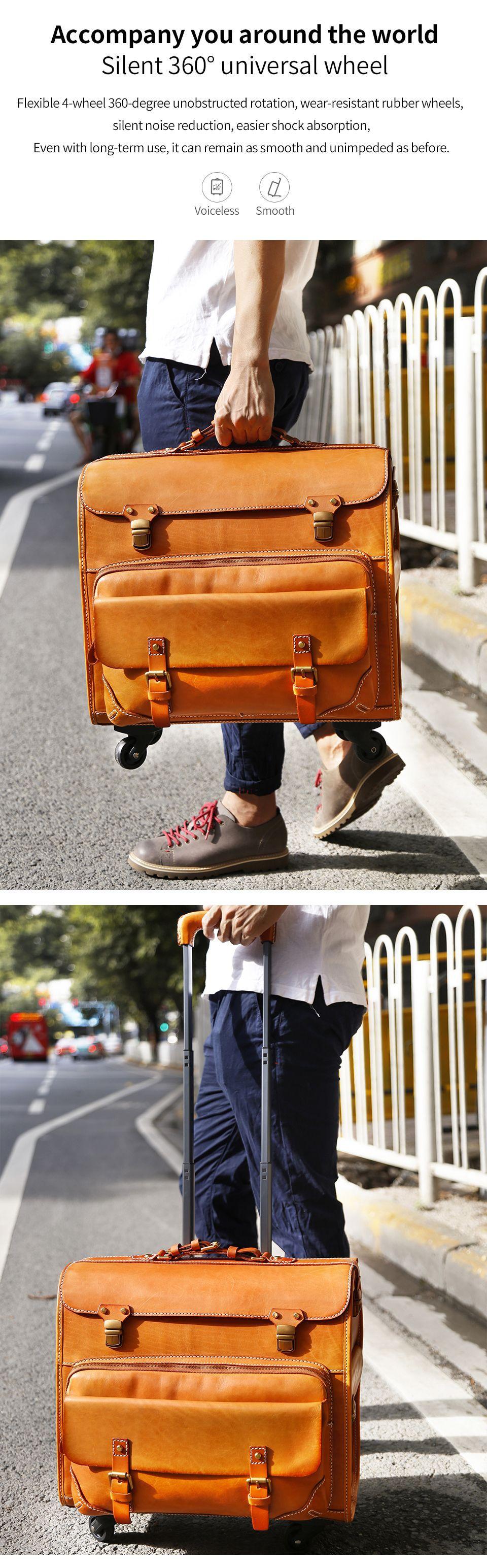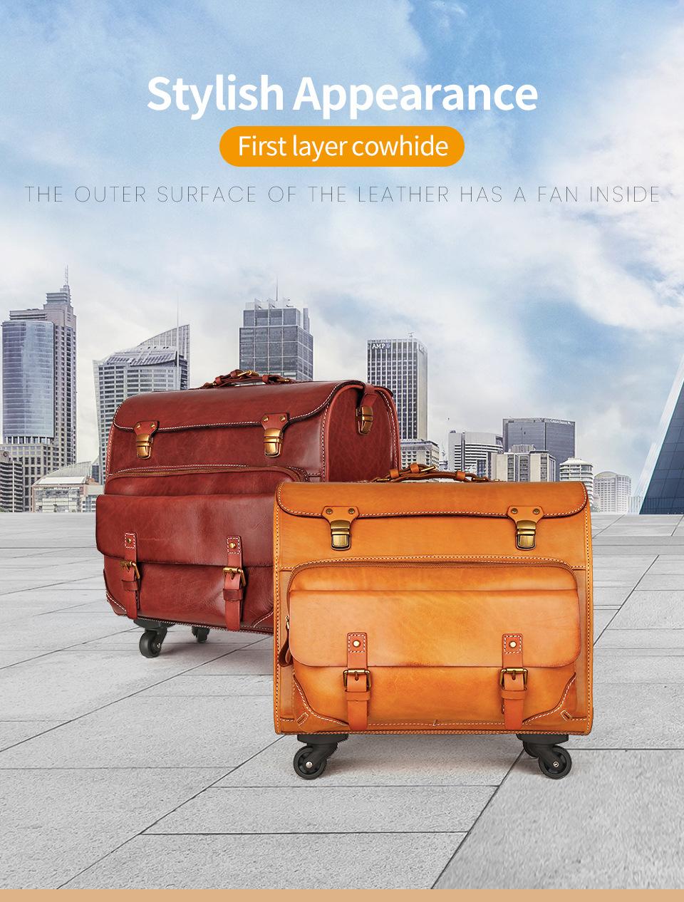 Compre Mala de viagem personalizada retrô de couro genuíno, mala de viagem executiva masculina e feminina multifuncional de 20 polegadas com rodinhas universais no atacado no Joom.pro