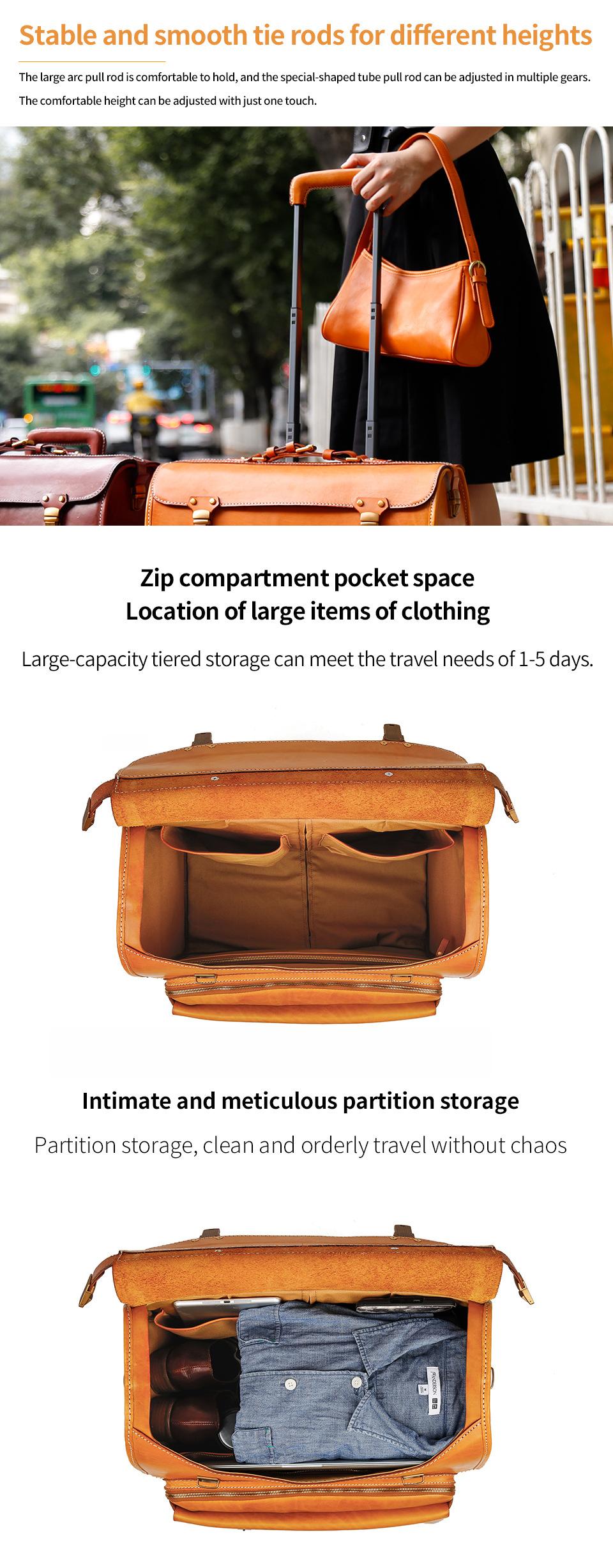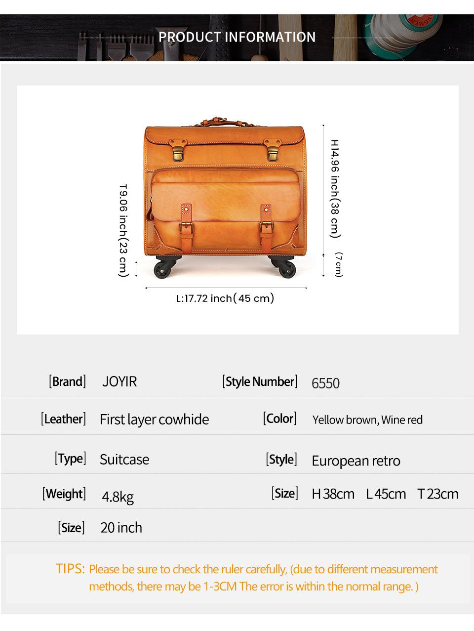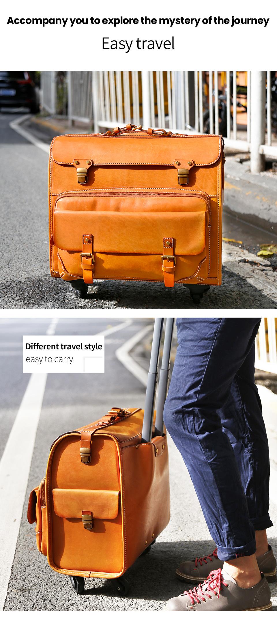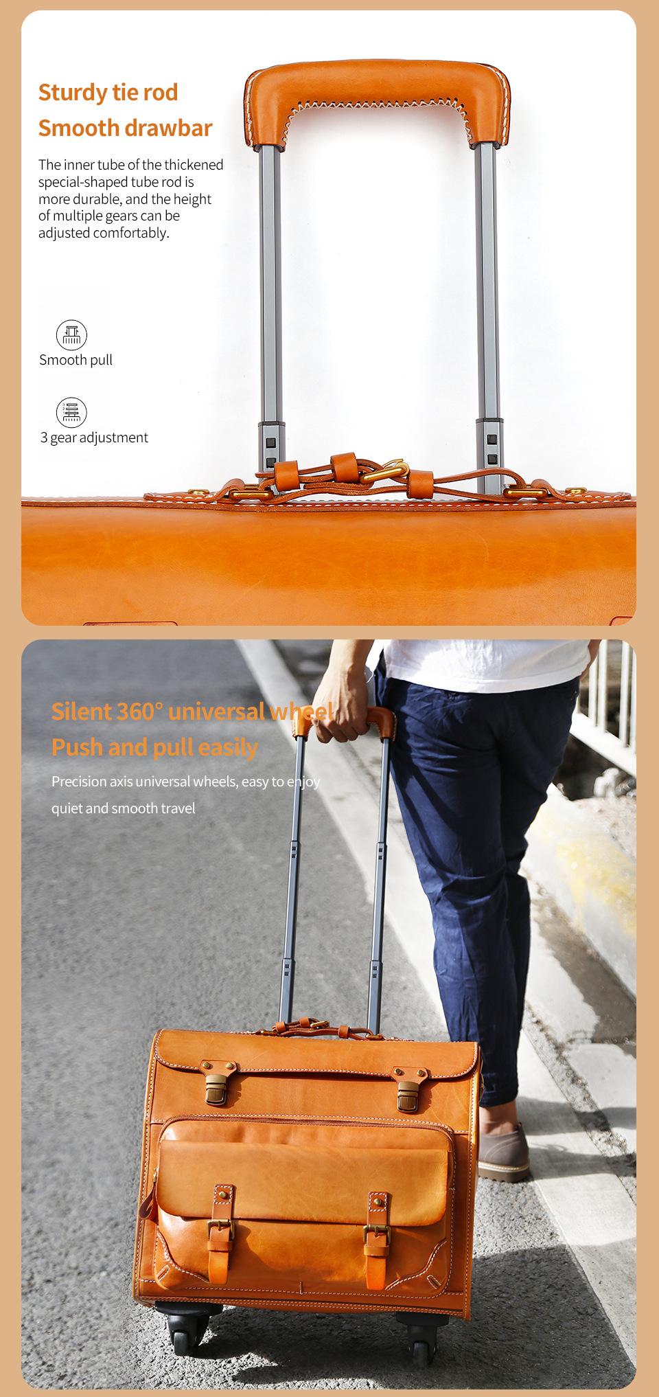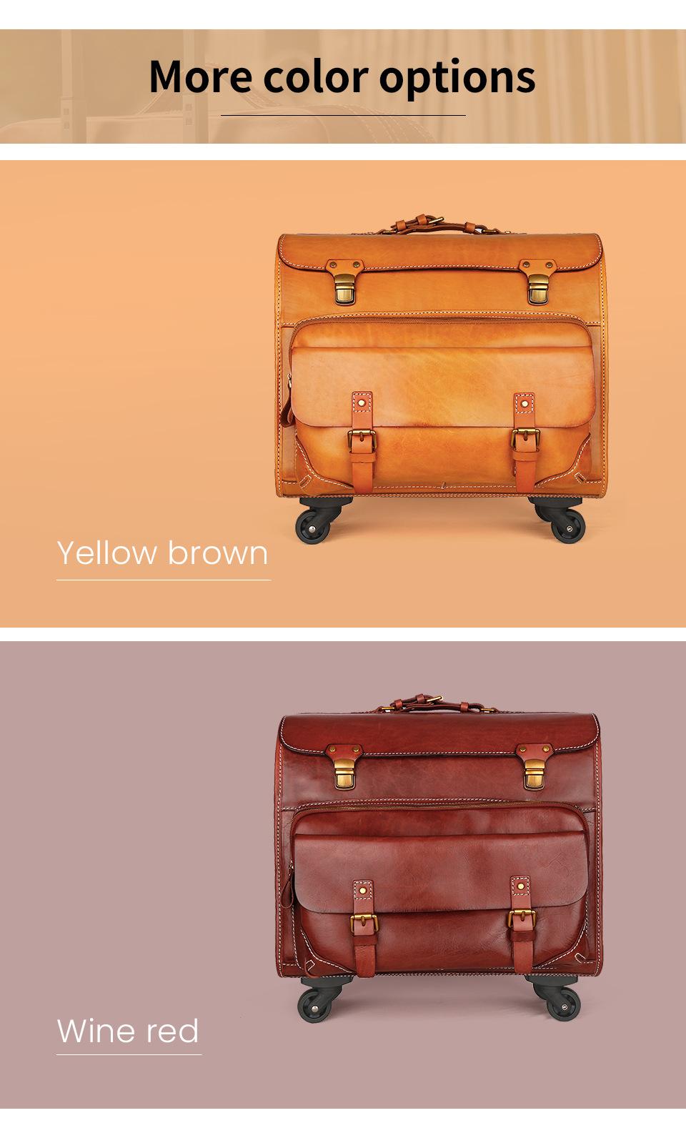 Compre Mala de viagem personalizada retrô de couro genuíno, mala de viagem executiva masculina e feminina multifuncional de 20 polegadas com rodinhas universais no atacado no Joom.pro