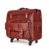 Mala de viagem personalizada retrô de couro genuíno, mala de viagem executiva masculina e feminina multifuncional de 20 polegadas com rodinhas universais