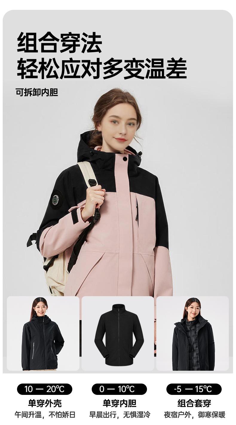 Compass Three-in-One Jacket Masculino e Feminino Conjunto de duas peças de Rocker Inner Pad Outdoor Warm-keeping Windproof Waterproof Mountaineering Suit