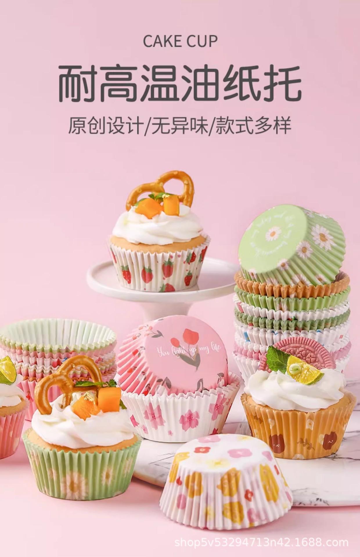 Suporte de papel para bolo de cor vermelha líquida à prova de óleo, papel de óleo de desenho animado, papel para assar, atacado