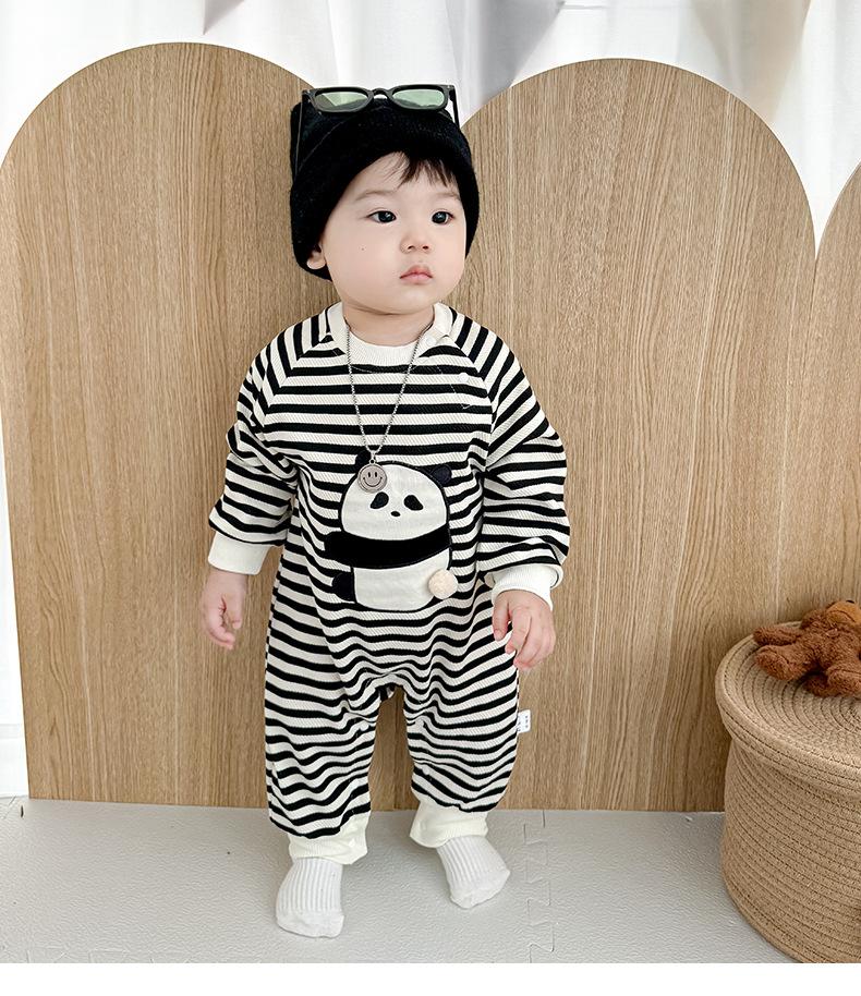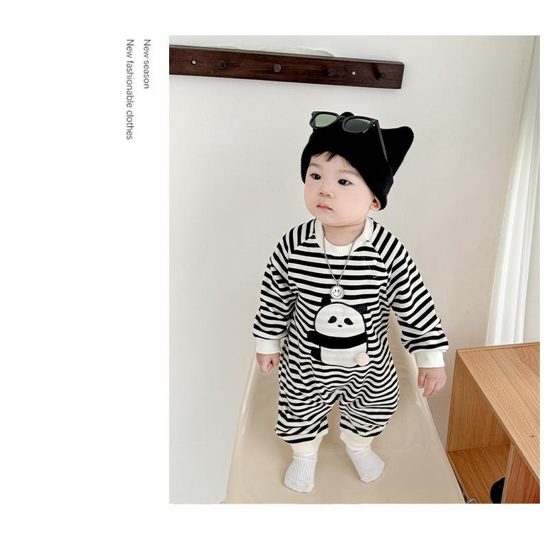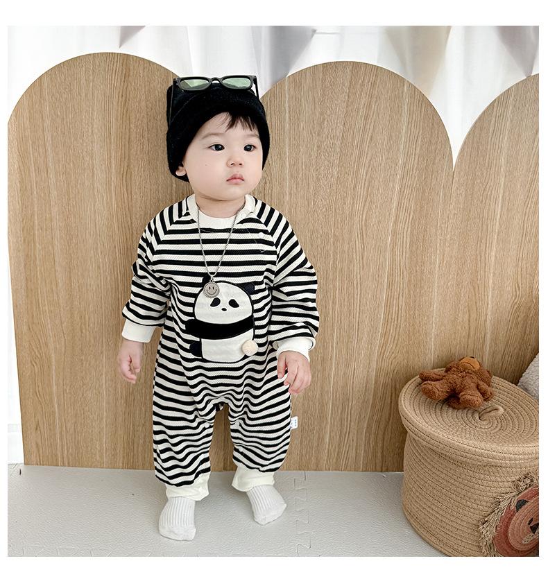 [Personalizado] Macacão fino de outono para bebê, novo macacão de algodão puro para bebê menino, panda vermelho, macacão infantil