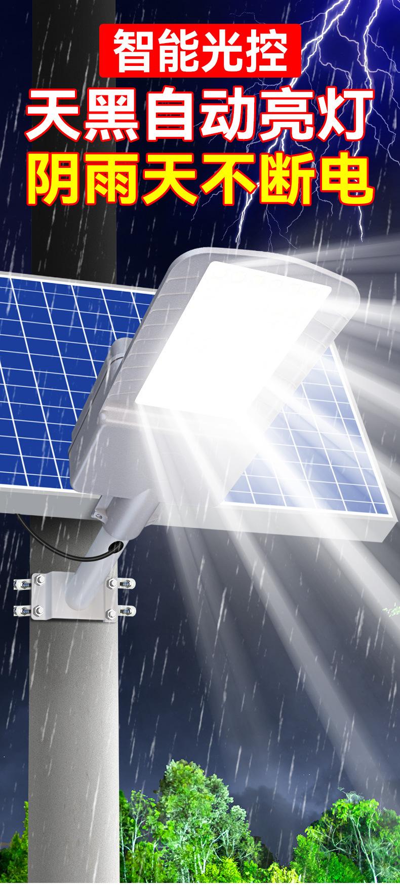 Luz de rua solar nova rural ao ar livre iluminação led jardim luzes conjunto completo de alta potência super brilhante para uso doméstico à prova d'água